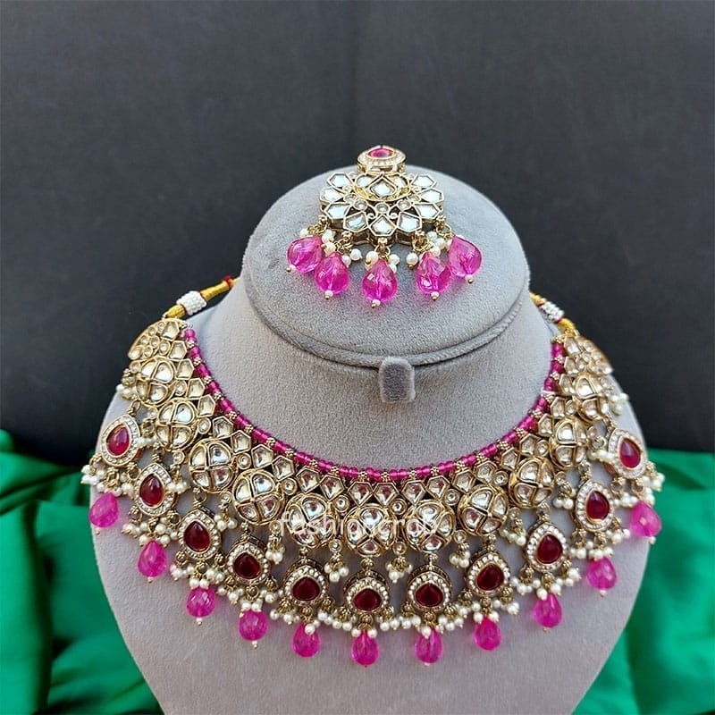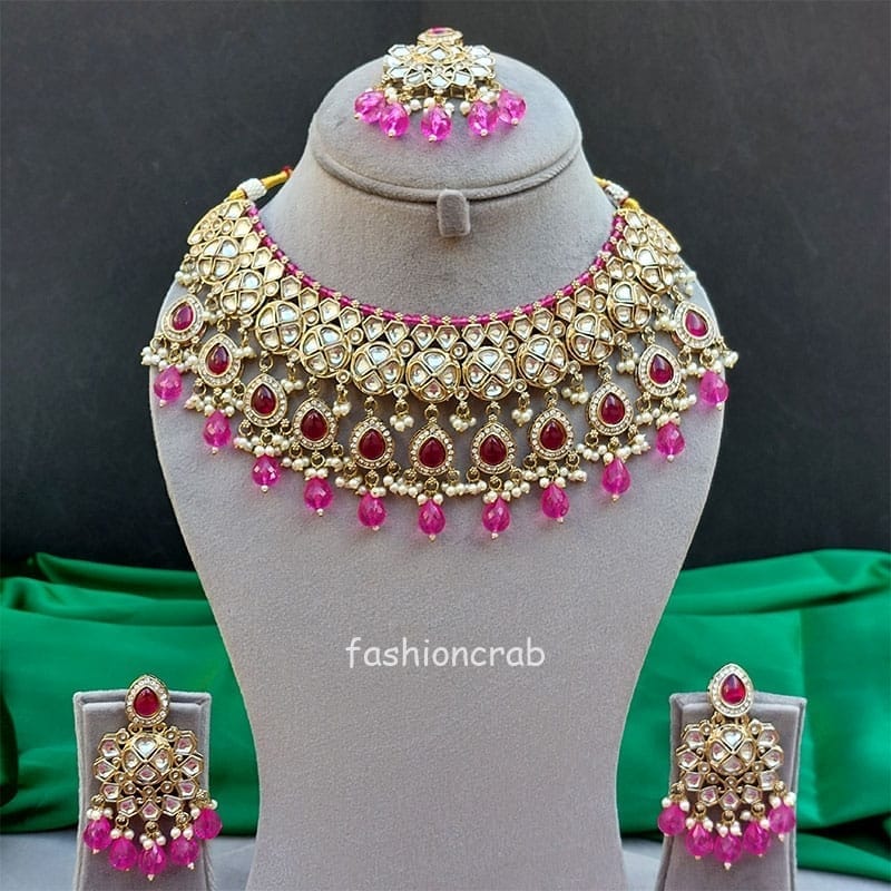 A pair Purple Bridal Kundan Jewellery Set for Lehenga.