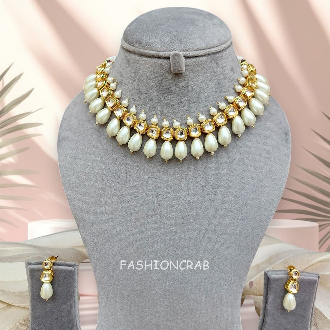 A pair of Traditional White Pearl Jewellery Set for a Saree.