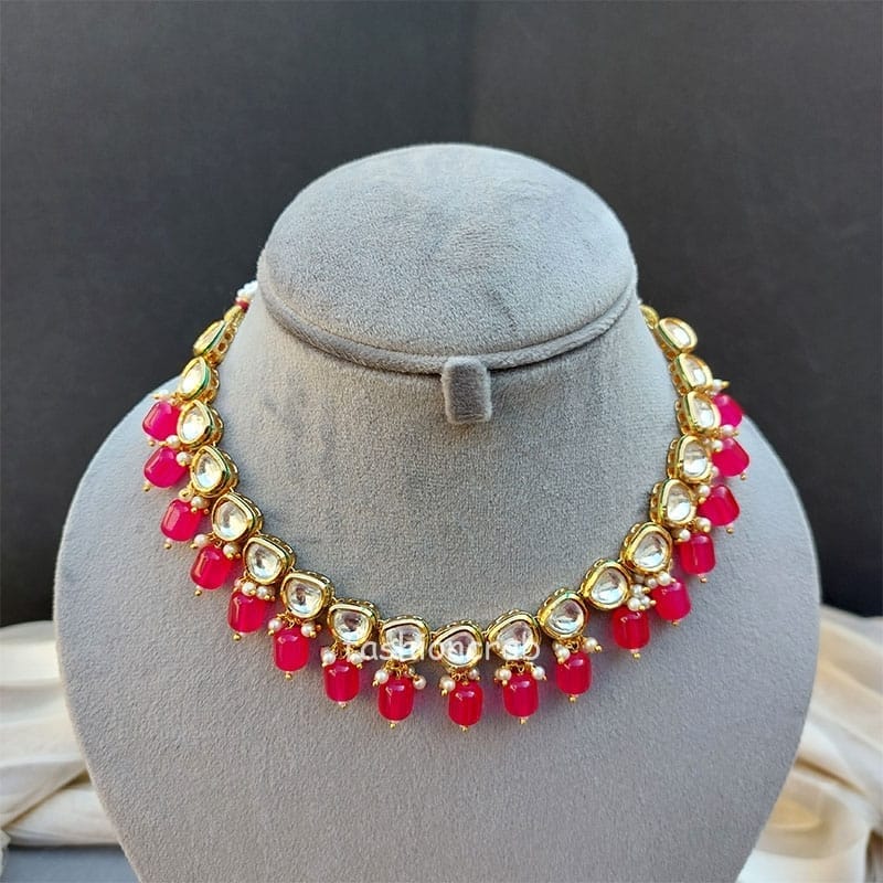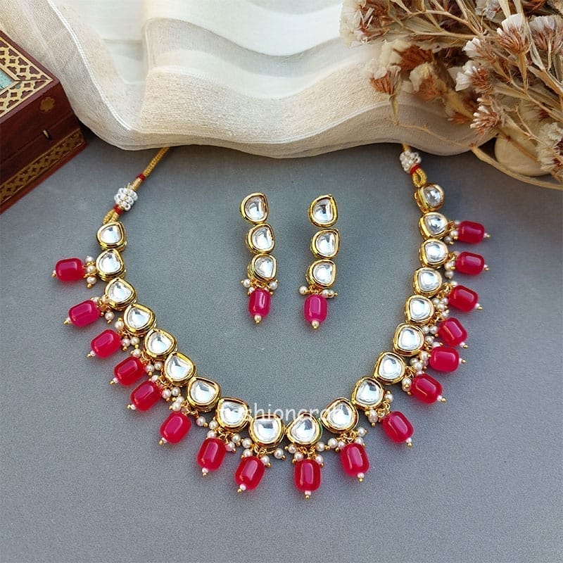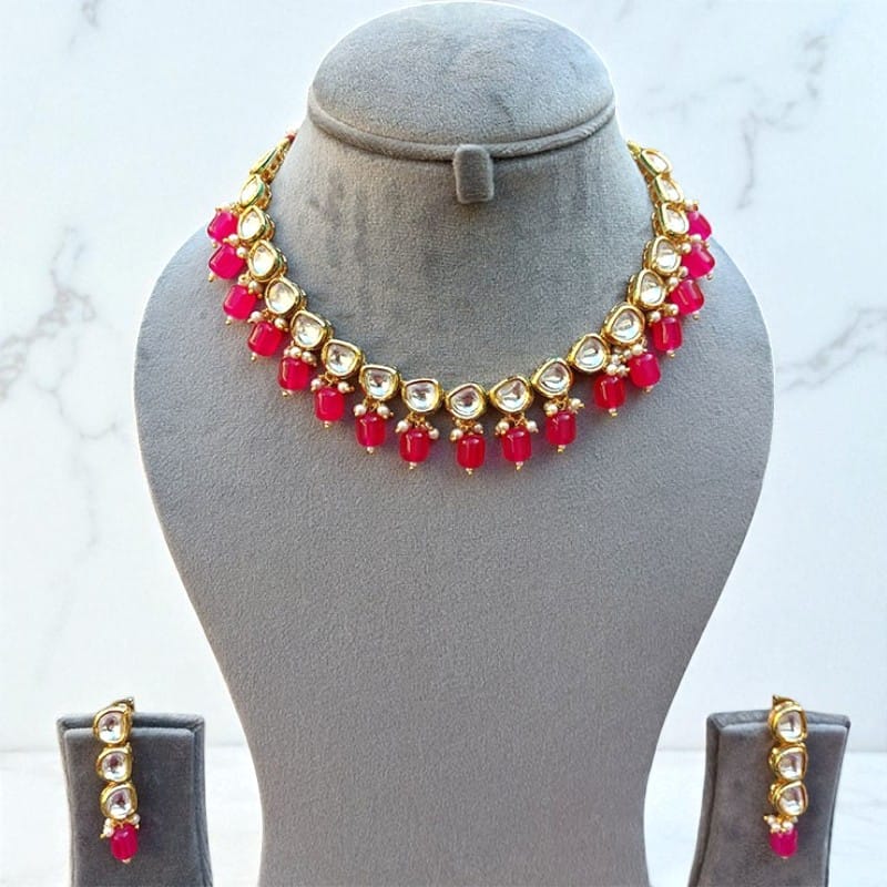 A pair of Traditional Kundan Necklace Dark Pink for a Saree.