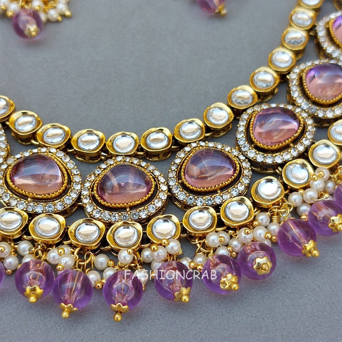 A pair of Traditional Ahana Pearl Necklace Set – Lavender.