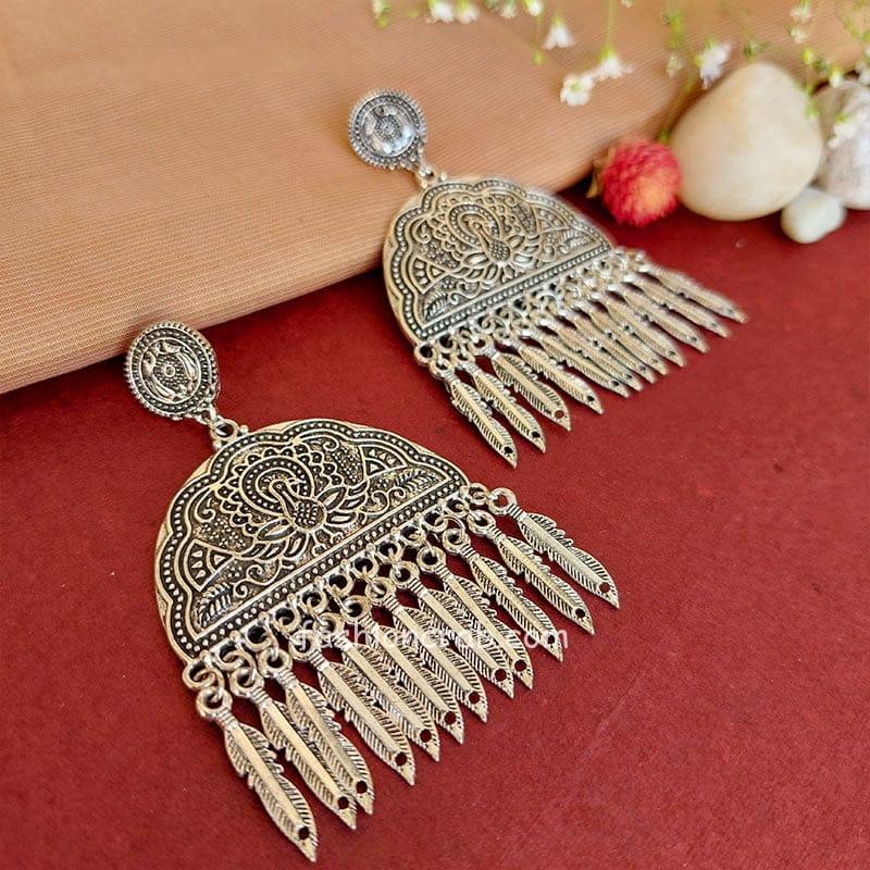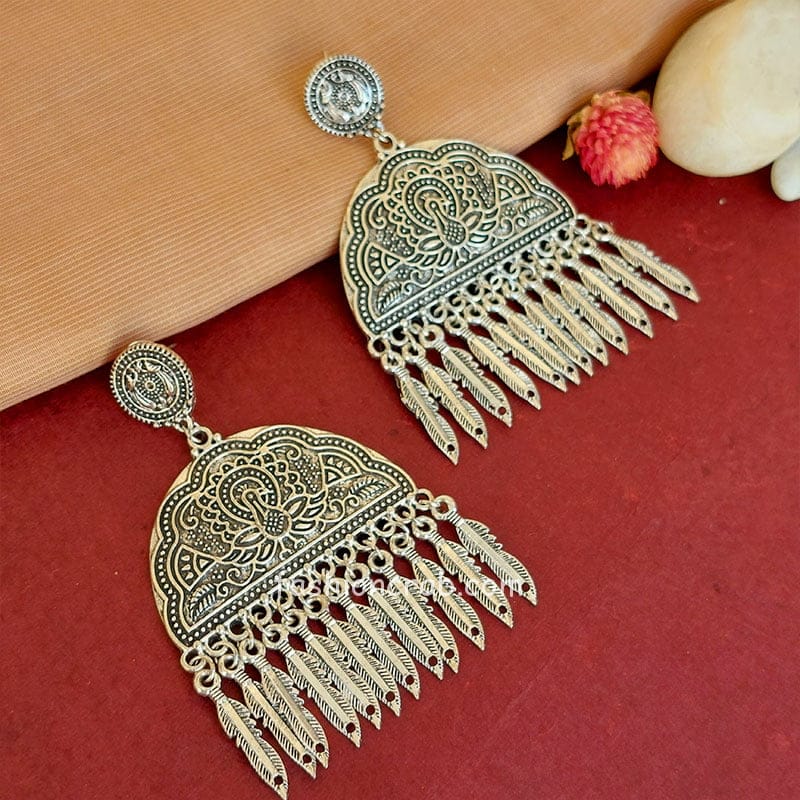 A pair of Traditional Ethnic Peacock Embellished Ethnic Oxidised Silver Earrings for Women.