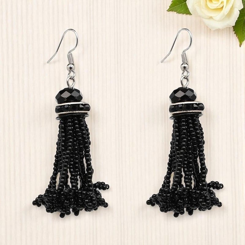 This Fashioncrab Black Beads Drop Earring for Women is made of Alloy. Women first love will always be jewelry; especially fashion jewelry completes the woman look. You can wear it on a different occasion and places like college or office party. You can match it with any short skirt or jumpsuit blue-black jeans. You can also wear it on regular basis. Make your every single moment memorable with these gorgeous earrings range. You can click a great selfie with these white drop earrings or our wide range of traditional and fashion jewelry.