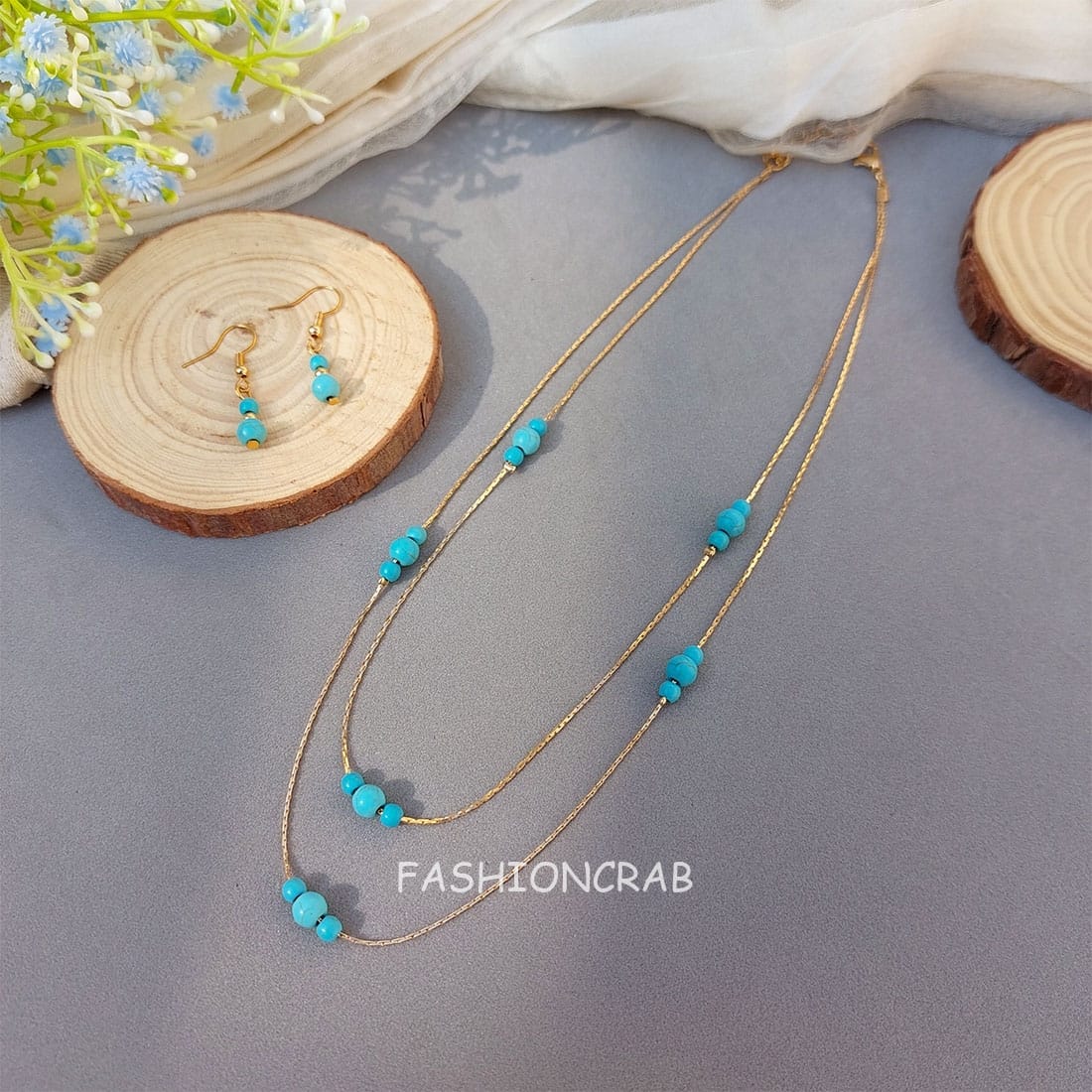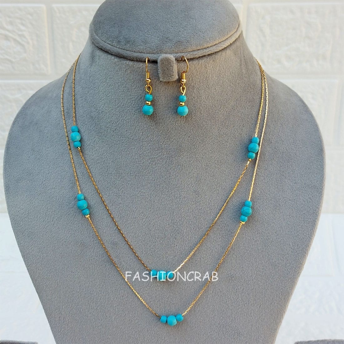 This Lightweight Blue Beads Minimal Jewellery Set For Women is very much in high trend gives you a really trendy as well as vintage look. You can wear it on every occasion like party, outing with friends, college, and even office. Team this necklace set with your jeans with a low neck shirt or skirt. For more, check out our latest fashion earrings and necklace set.