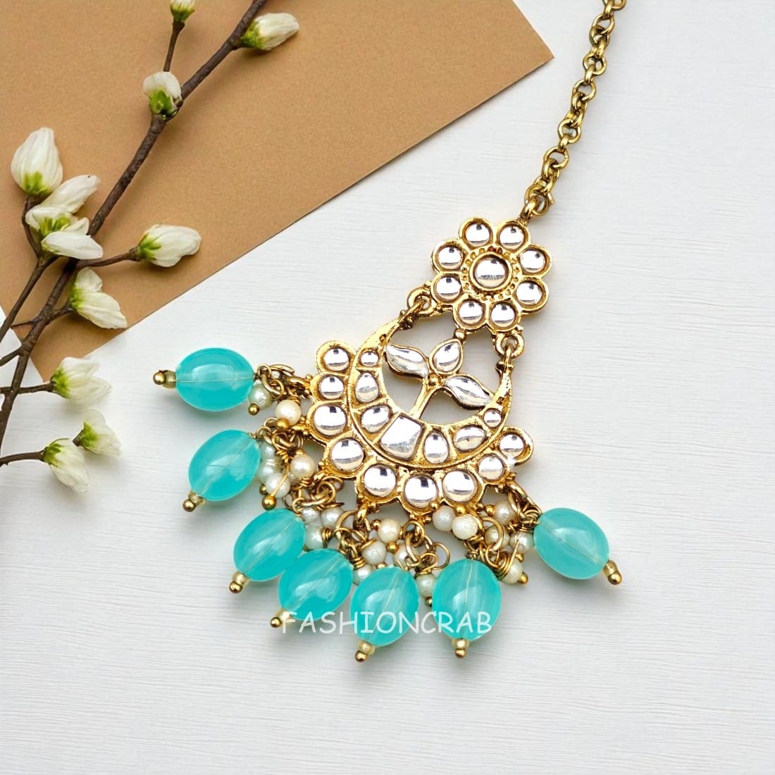 A pair of Traditional Blue Pearl Kundan Set for Anniversary Gift.