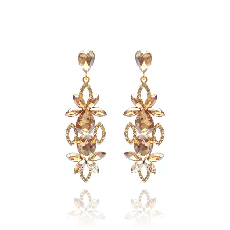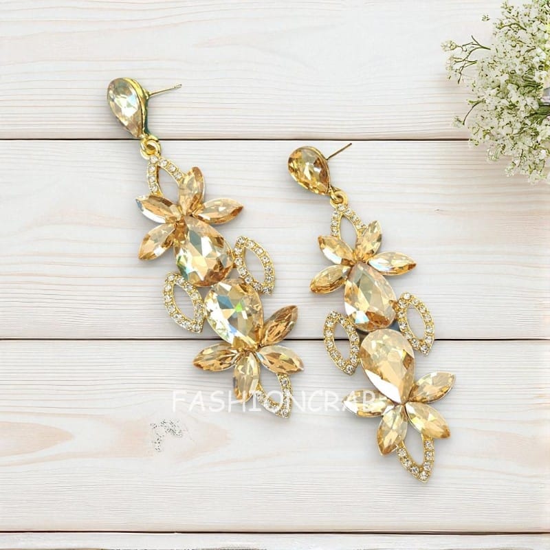 A pair of Champagne Color Party Wear Long Earrings for Women.