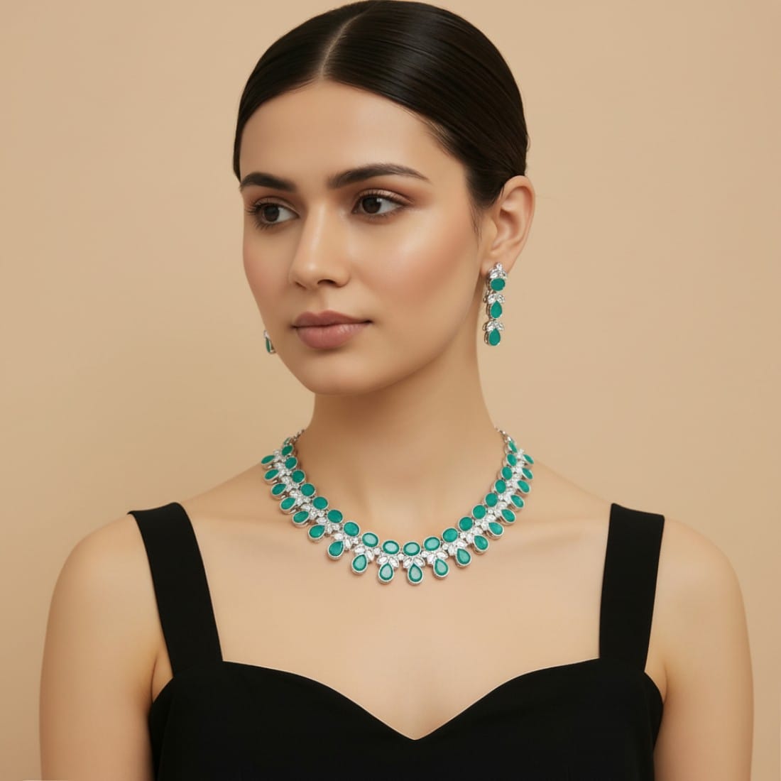 Tags: ad earrings, ad jewellery, american diamond earrings artificial, bollywood jewelry, bridal jewellery, christmas, costume jewelry, crystal necklace, crystal statement necklaces, cubic zirconia earrings india, cz jewelry, cz necklace set, diwali, earrings for wedding party, eid, ethnic jewellery, festive jewellery, green necklace, green necklace choker, indian jewellery, karwachauth, navratri, necklace, necklace set, necklaces, party necklace, wedding jewellery