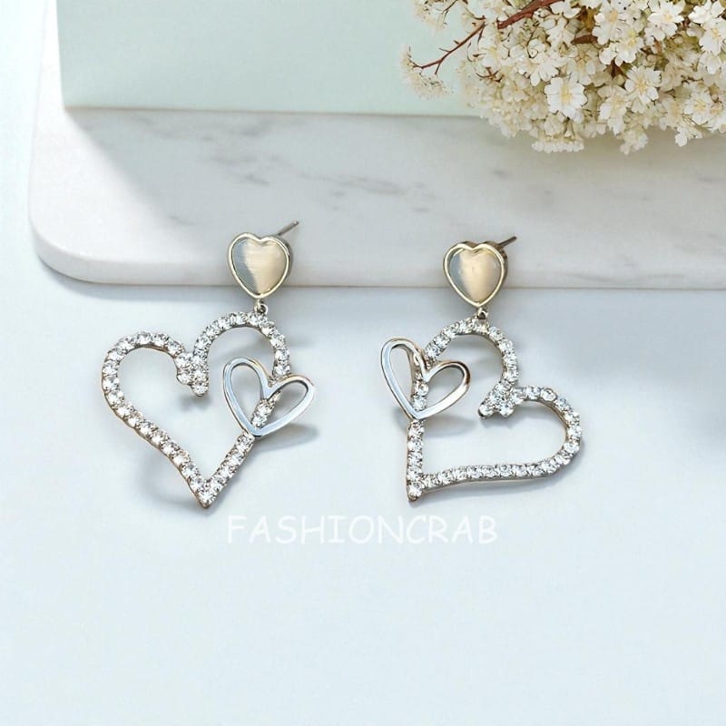 A pair of Heart Shaped Anti Tarnish Earrings for Girls with stone work all over.