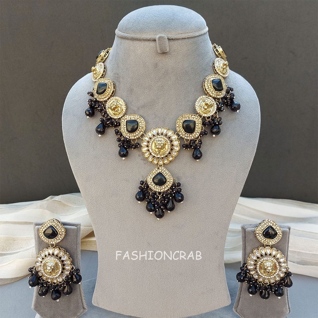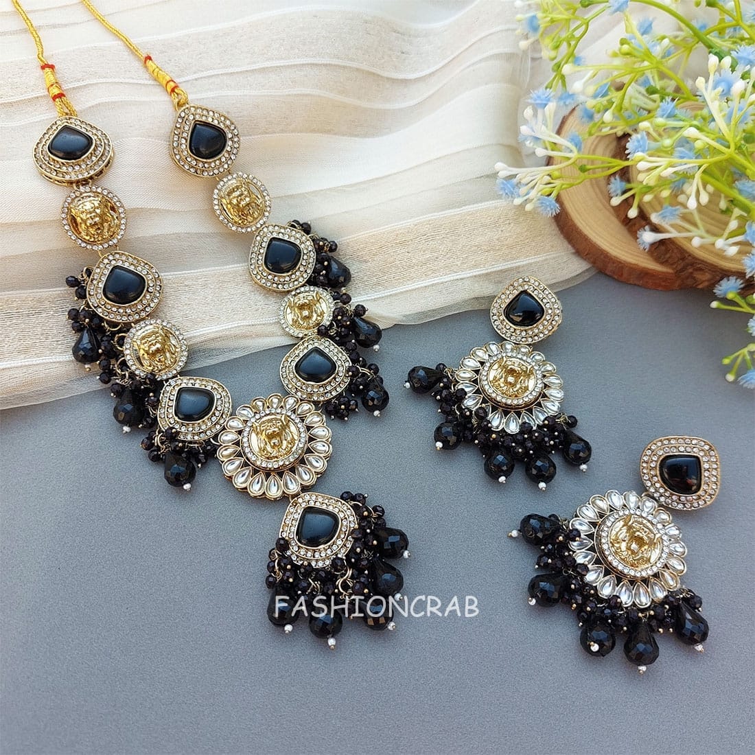 A pair of Traditional Inayat Kundan Necklace – Black.