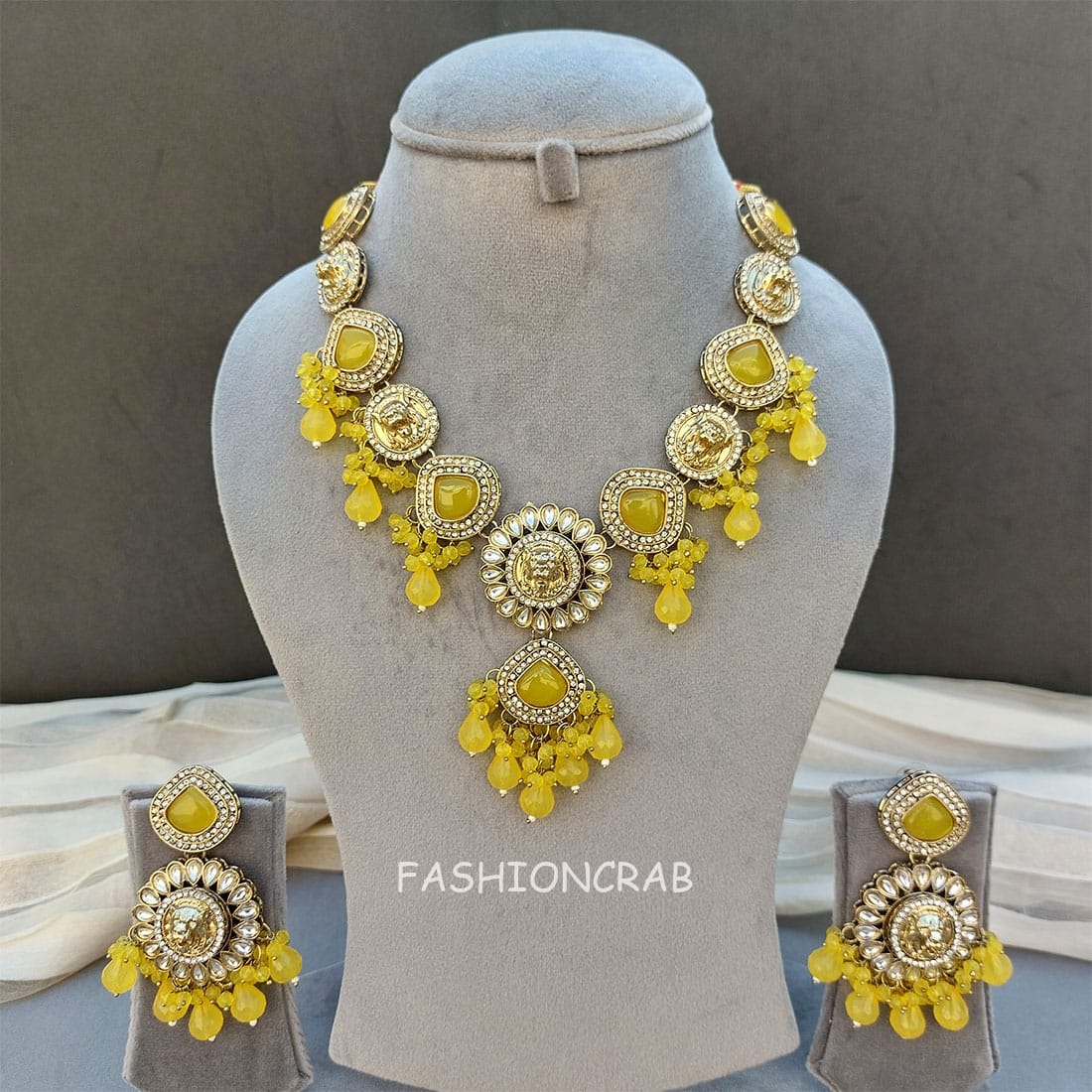 A pair of Traditional Inayat Kundan Necklace – Yellow.