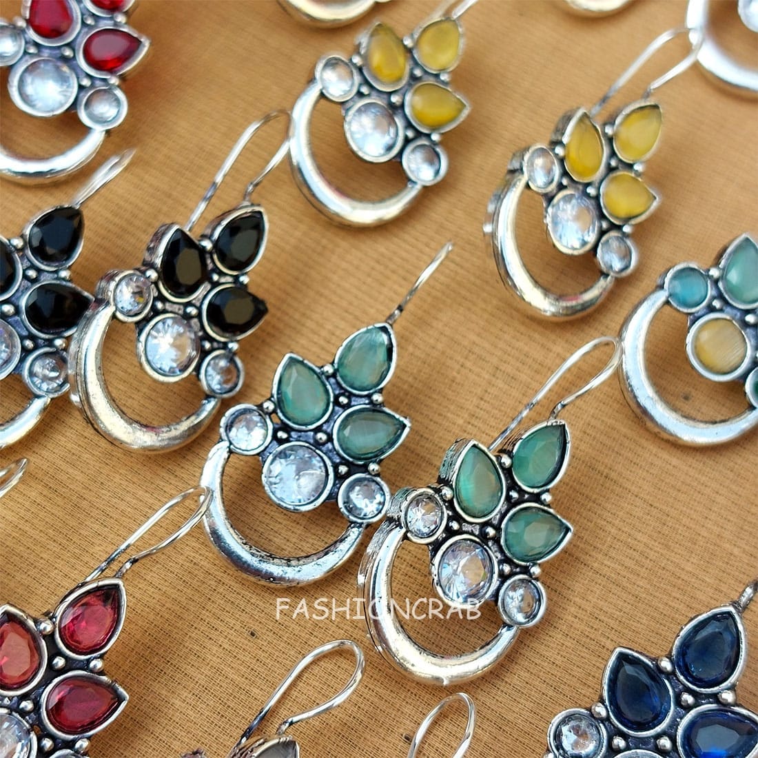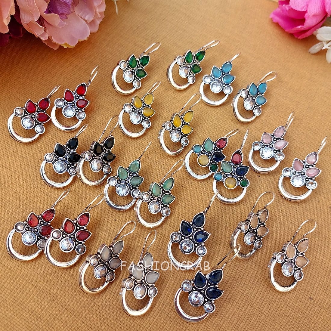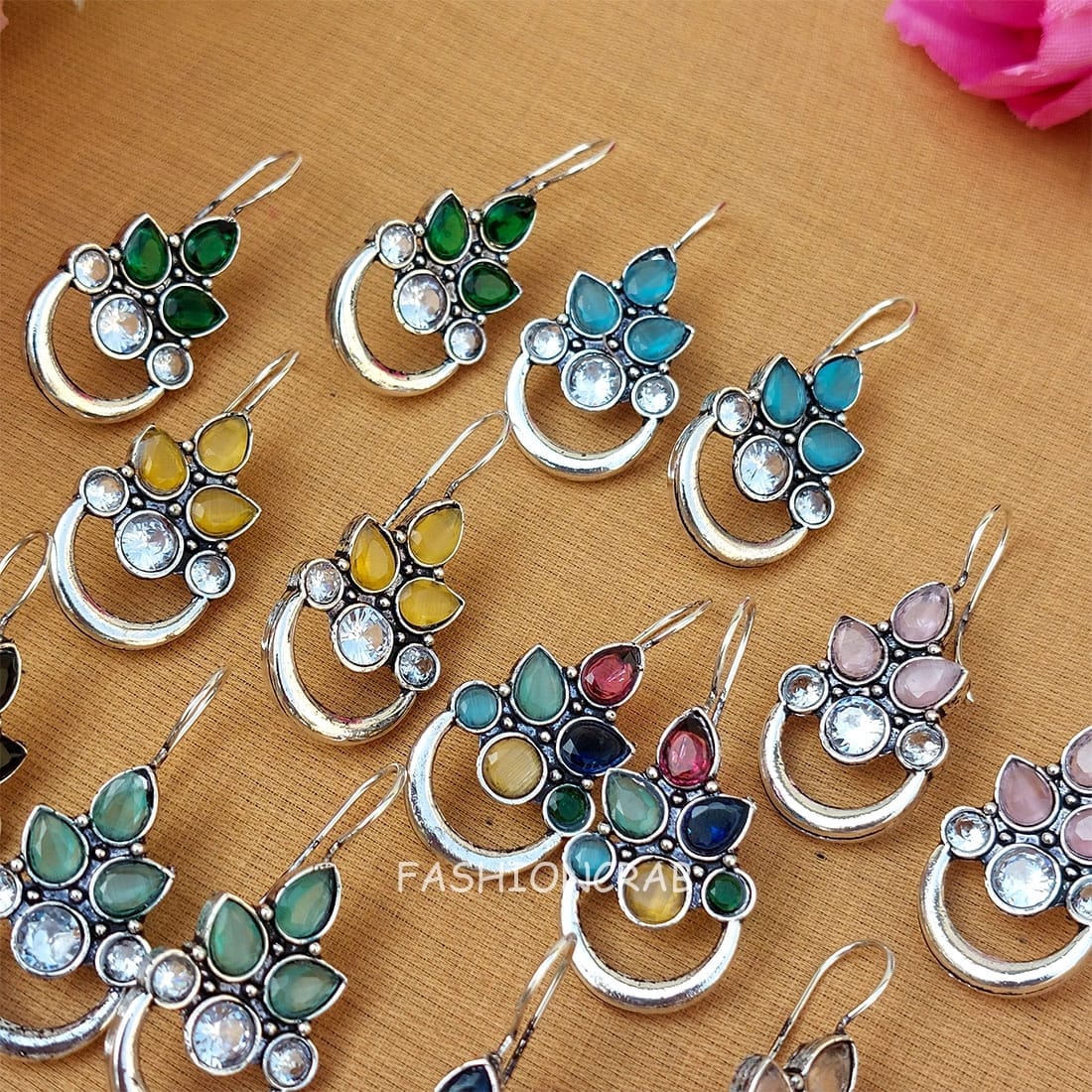 A pair of 6 Assorted Oxidised Earrings for Women with stone work.