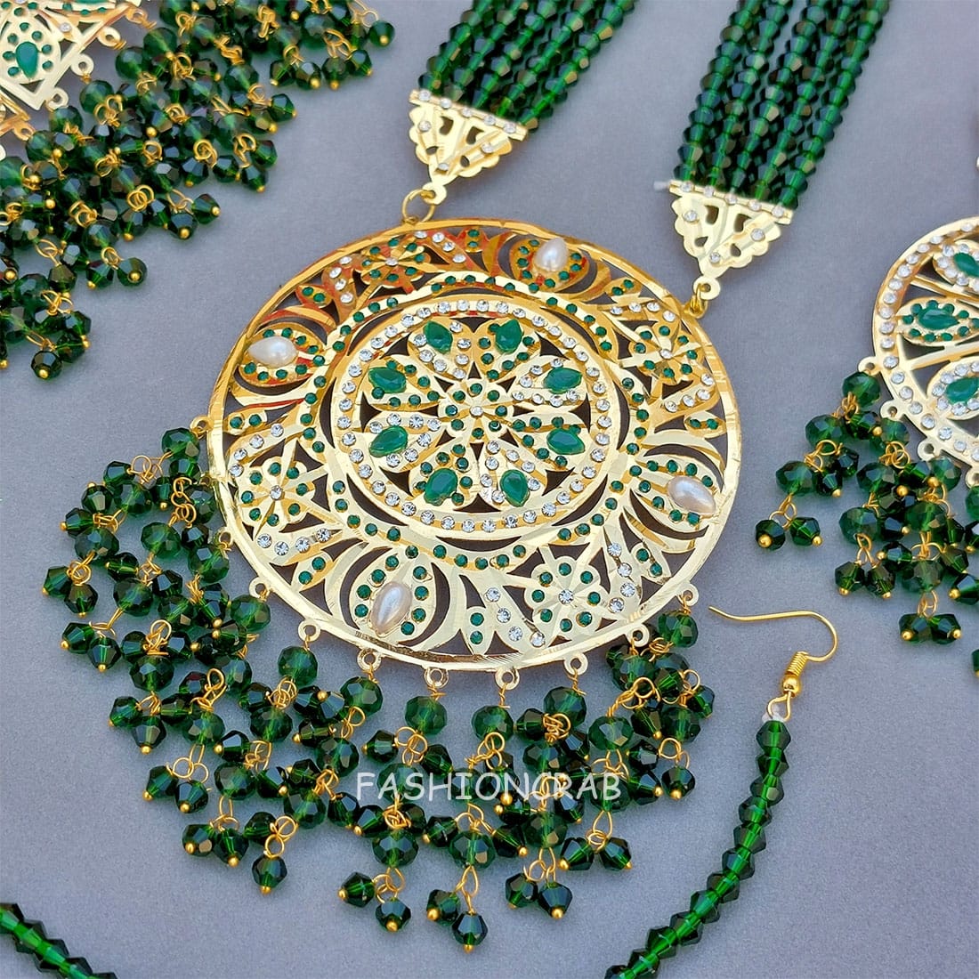 A pair of Traditional Bridal Jewellery Set Green for a Wedding.