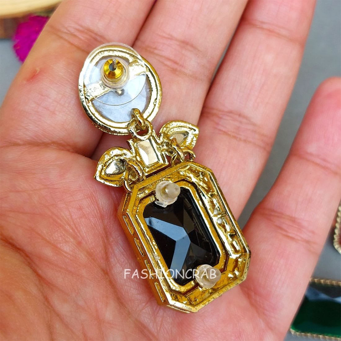 A pair of golden-toned Bollywood Changeable Earrings with Stone for Co-ord Set.