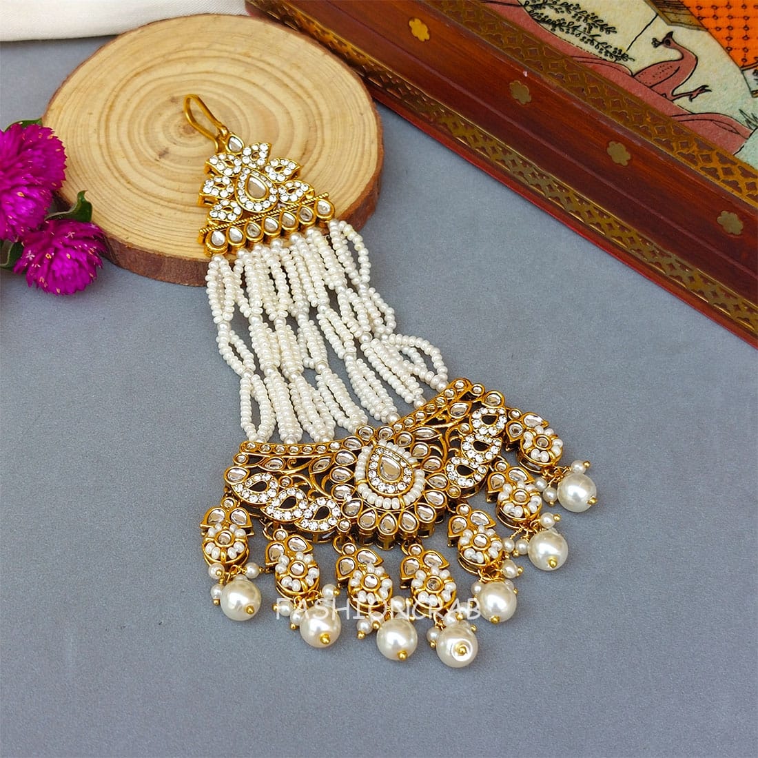 A pair of Gehna Kundan Jhumar Passa for Wedding.