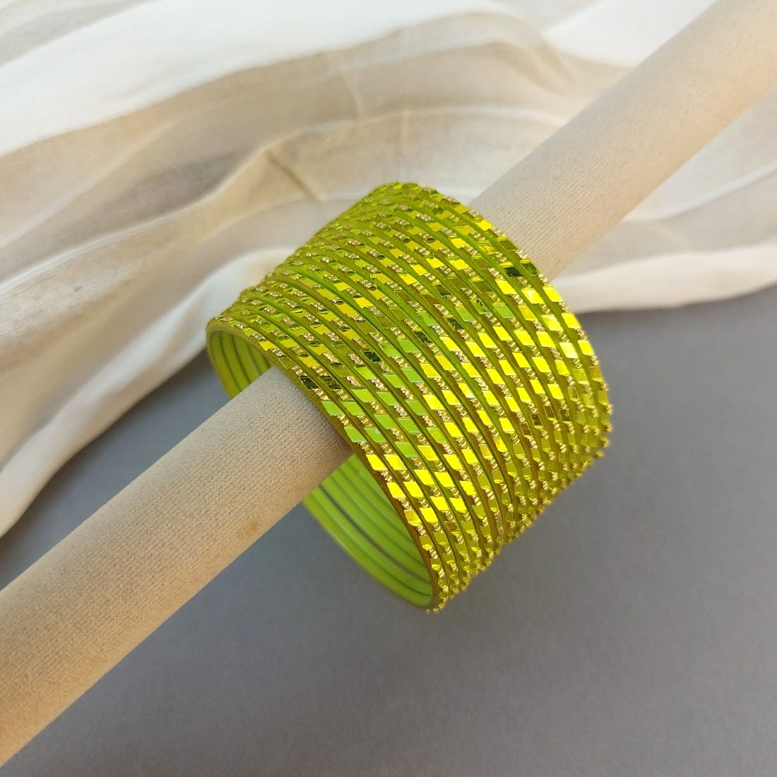 Glass bangles are fragile and require gentle handling to prevent breakage. Avoid exposing them to extreme temperatures, as this can cause them to crack or shatter. Keep them away from rough surfaces and store them separately to avoid scratches. Clean them regularly with a soft cloth and avoid using harsh chemicals. It is also best to remove them before any physical activity or household chores.