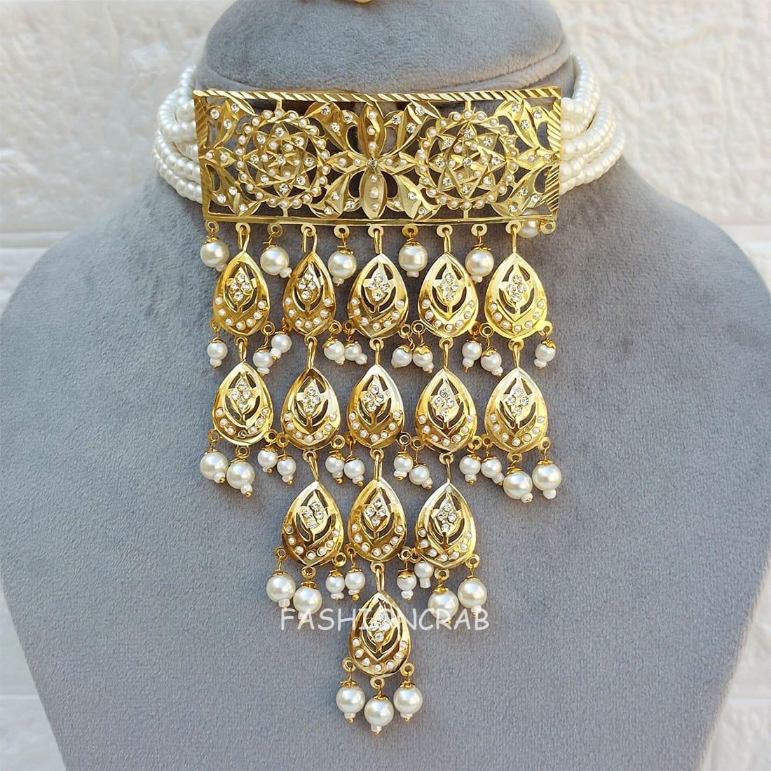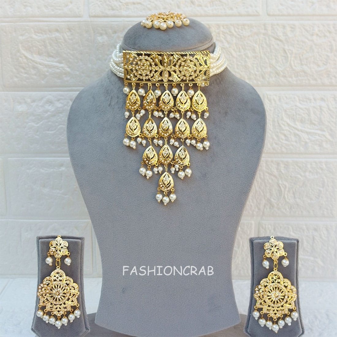 A pair of Traditional Folk Jadau Jewellery White for a Wedding.