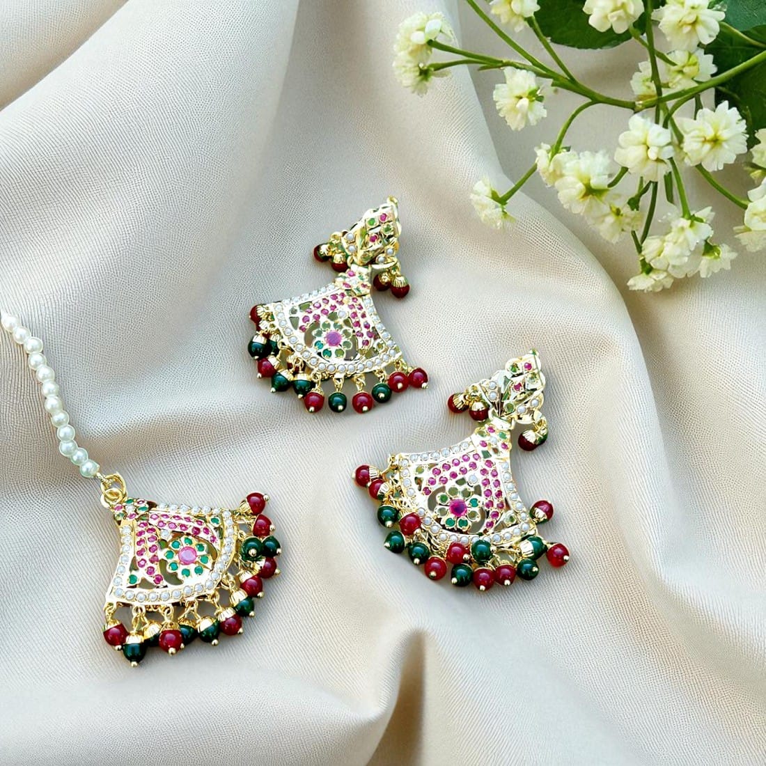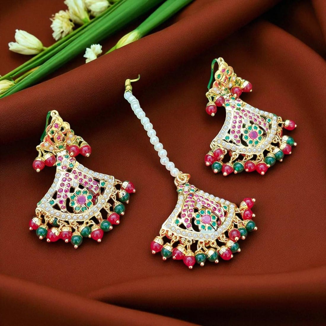 A pair of Traditional Jadau Maangtikka Set for Punjabi Bride.