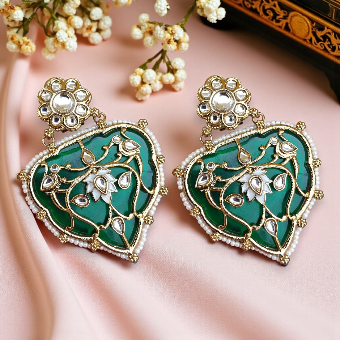 Indian Bollywood Style Jiyana Green Big Kundan Earrings