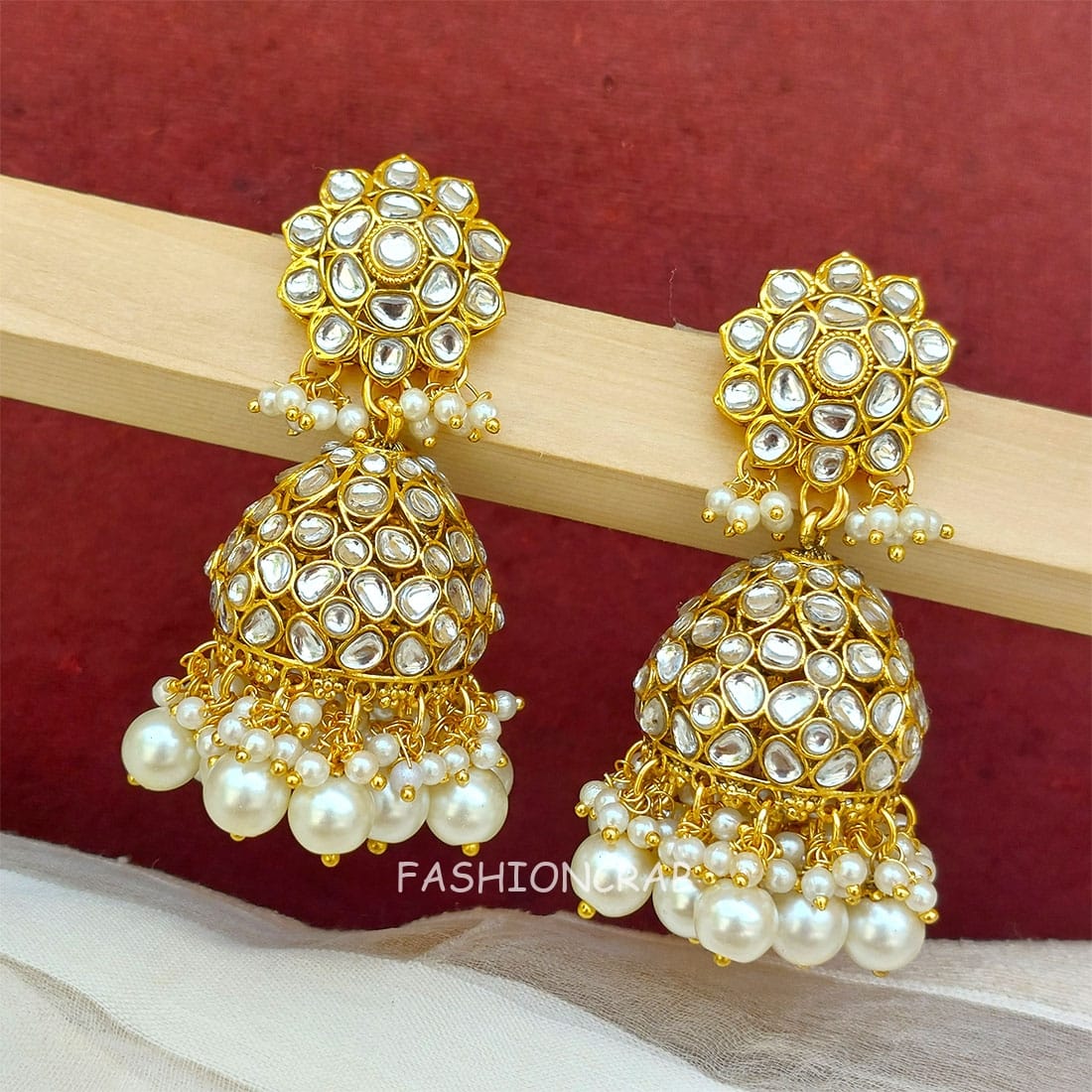 A pair of Khushbu Kundan Jhumka White.