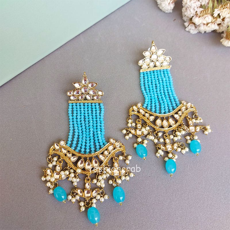 A pair of Lightweight Maisha Kundan Earrings – Blue for Sharara Suit.