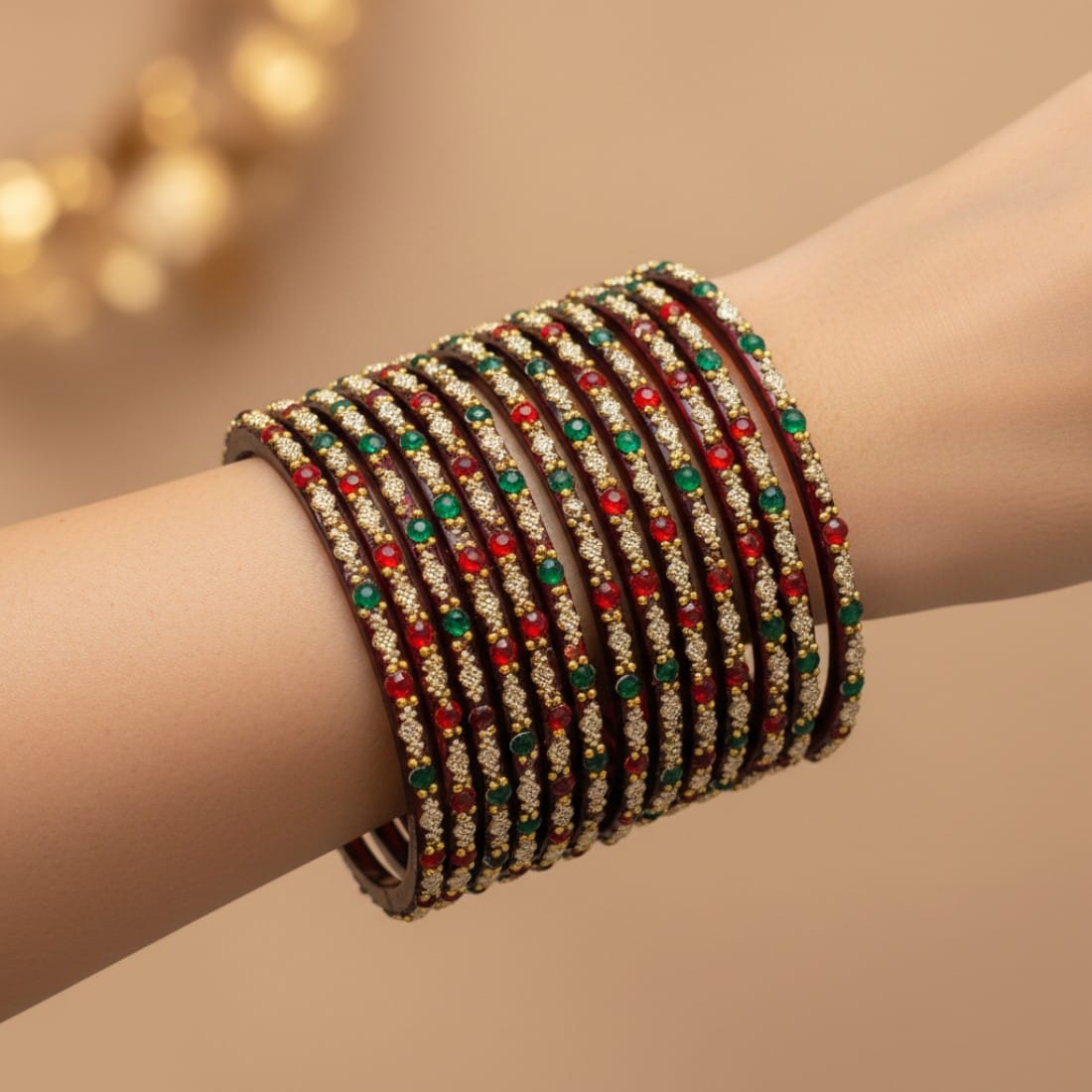 Glass bangles are fragile and require gentle handling to prevent breakage. Avoid exposing them to extreme temperatures, as this can cause them to crack or shatter. Keep them away from rough surfaces and store them separately to avoid scratches. Clean them regularly with a soft cloth and avoid using harsh chemicals. It is also best to remove them before any physical activity or household chores.