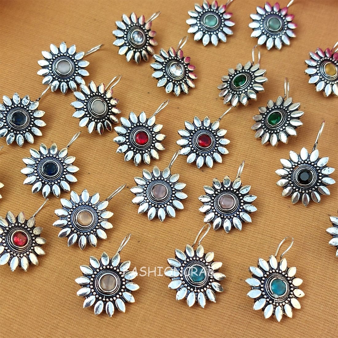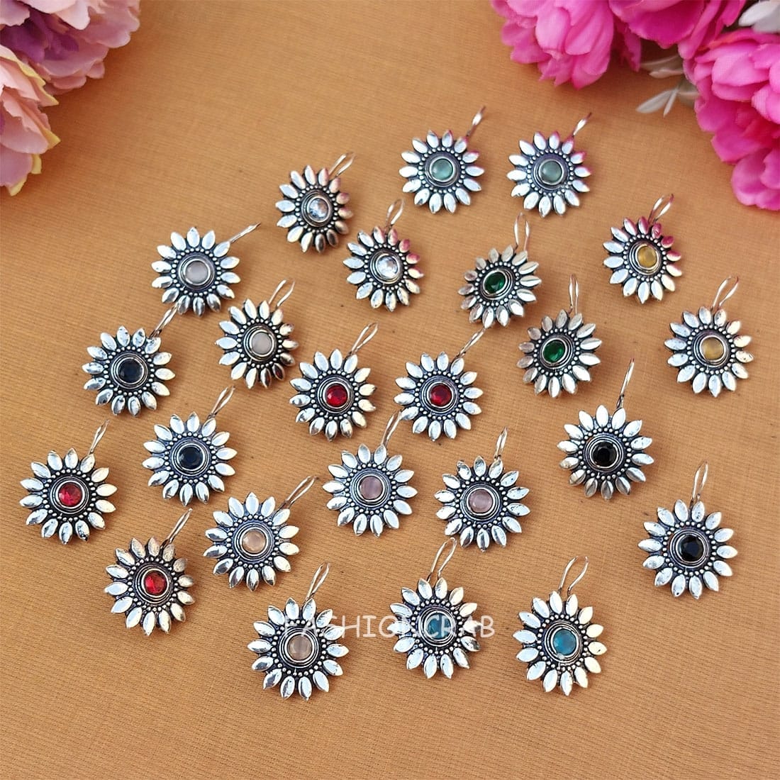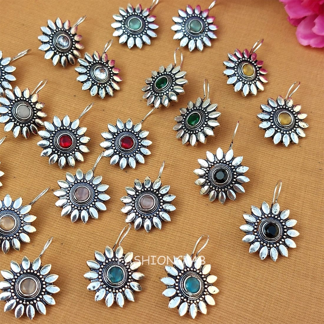 A pair of 6 Assorted Oxidised Earrings for Women with stone work.