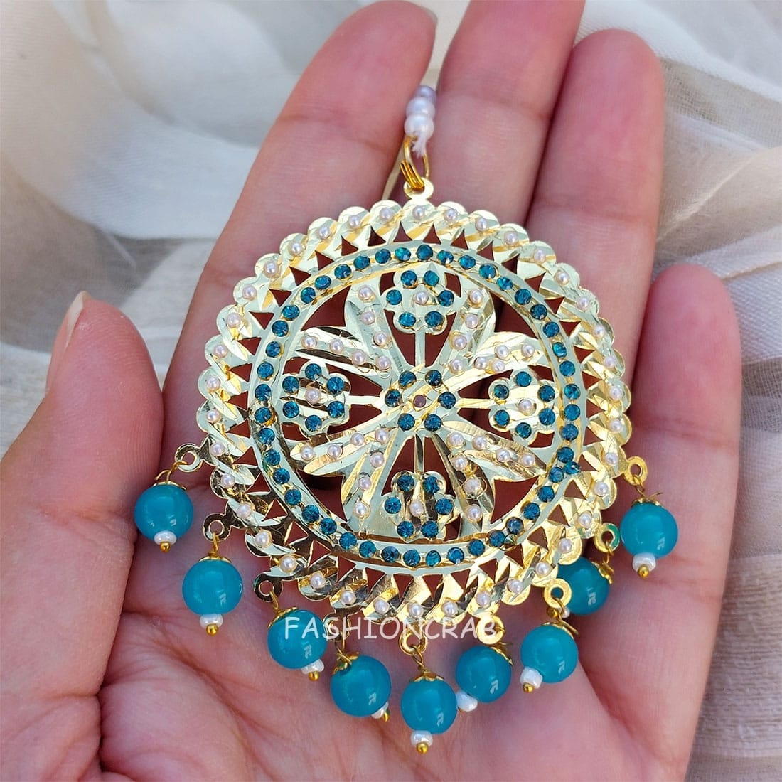Indian Bollywood Style Tamanna Jadau Earrings with Maangtikka Purple