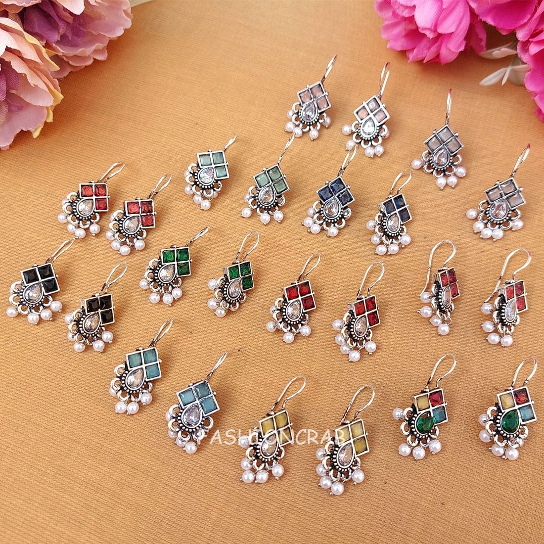 A pair of 6 Assorted Oxidised Stud Earrings for Women with stone work.