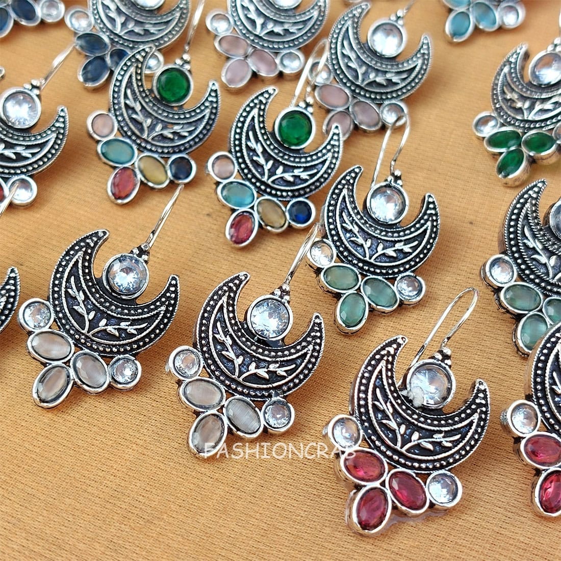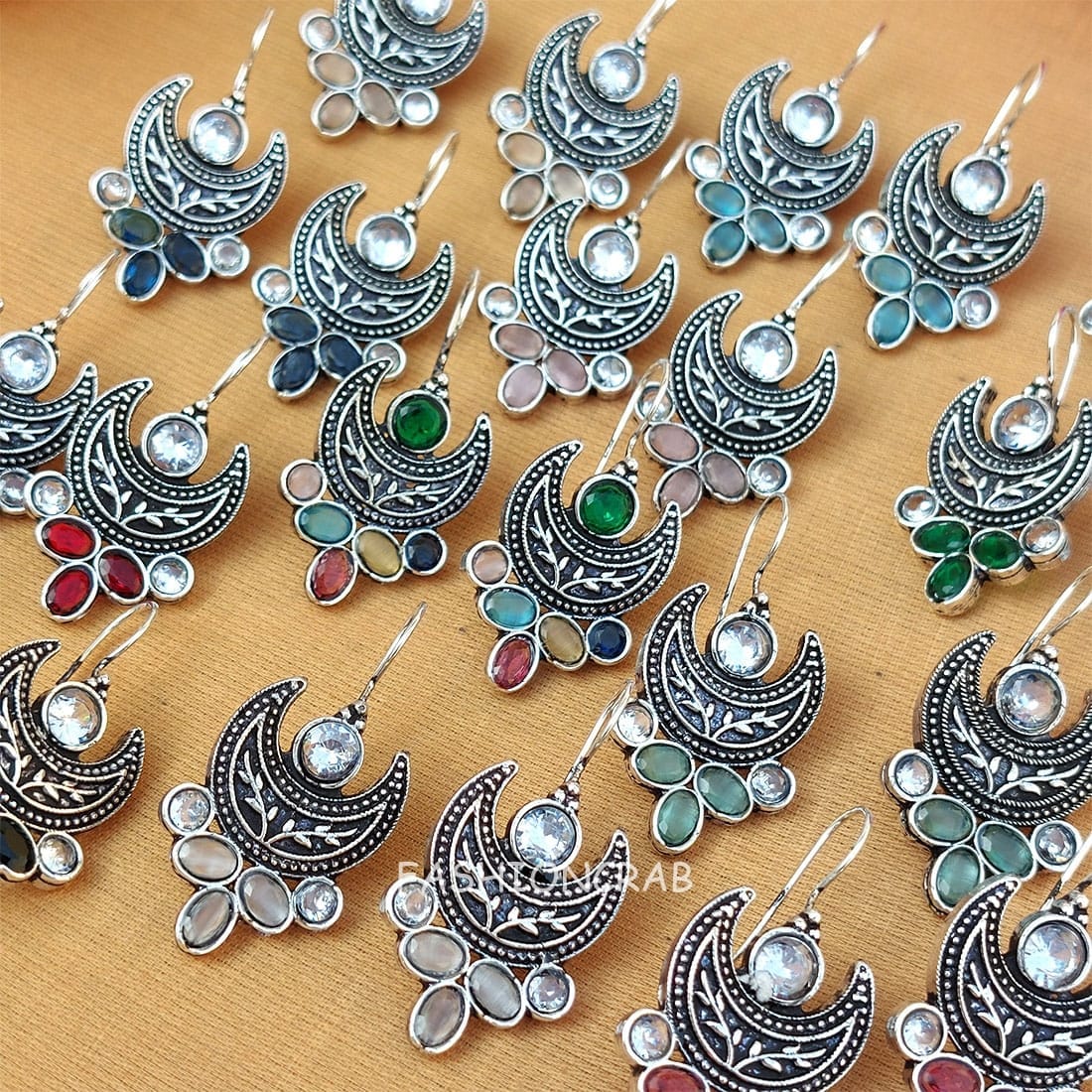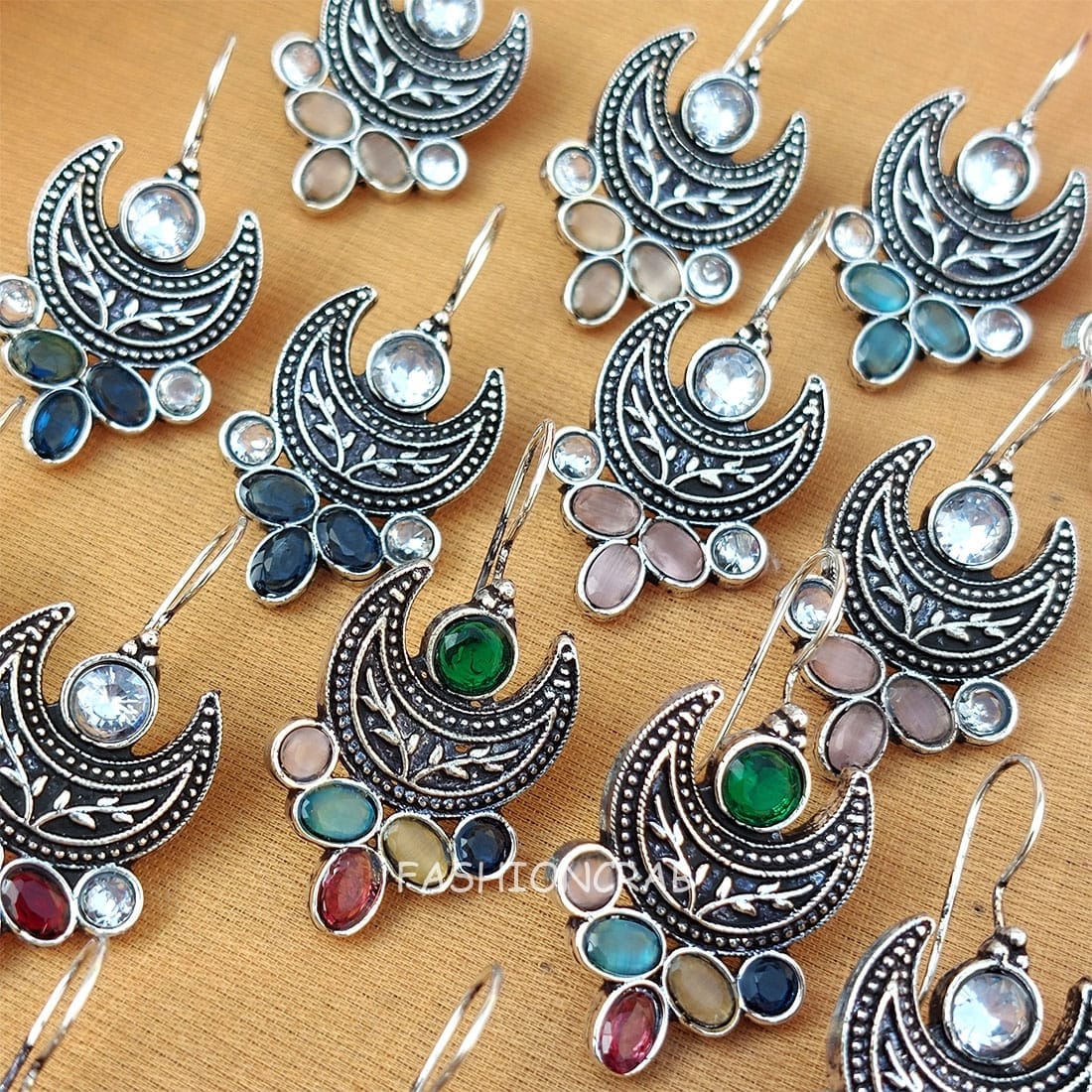 Indian Bollywood Style Amelia Oxidised Combo Earrings Set of 6