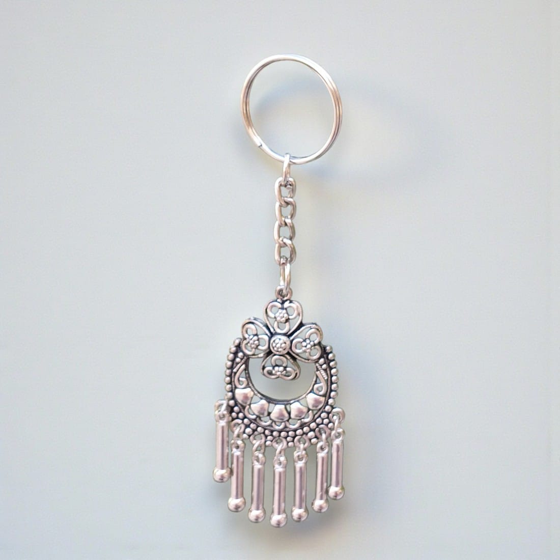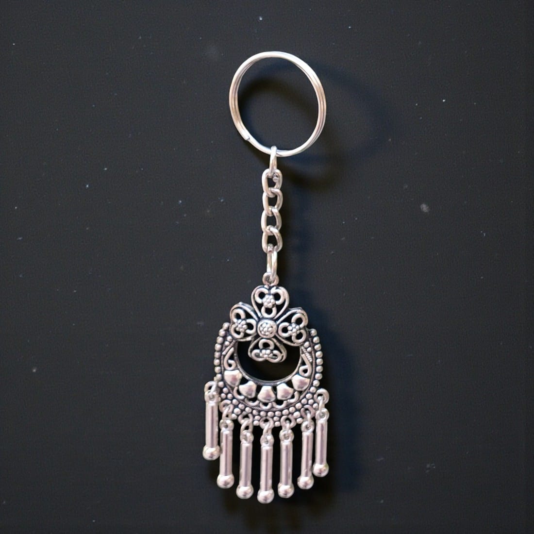 Indian Bollywood Style Oxidised Silver Earring Keychain
