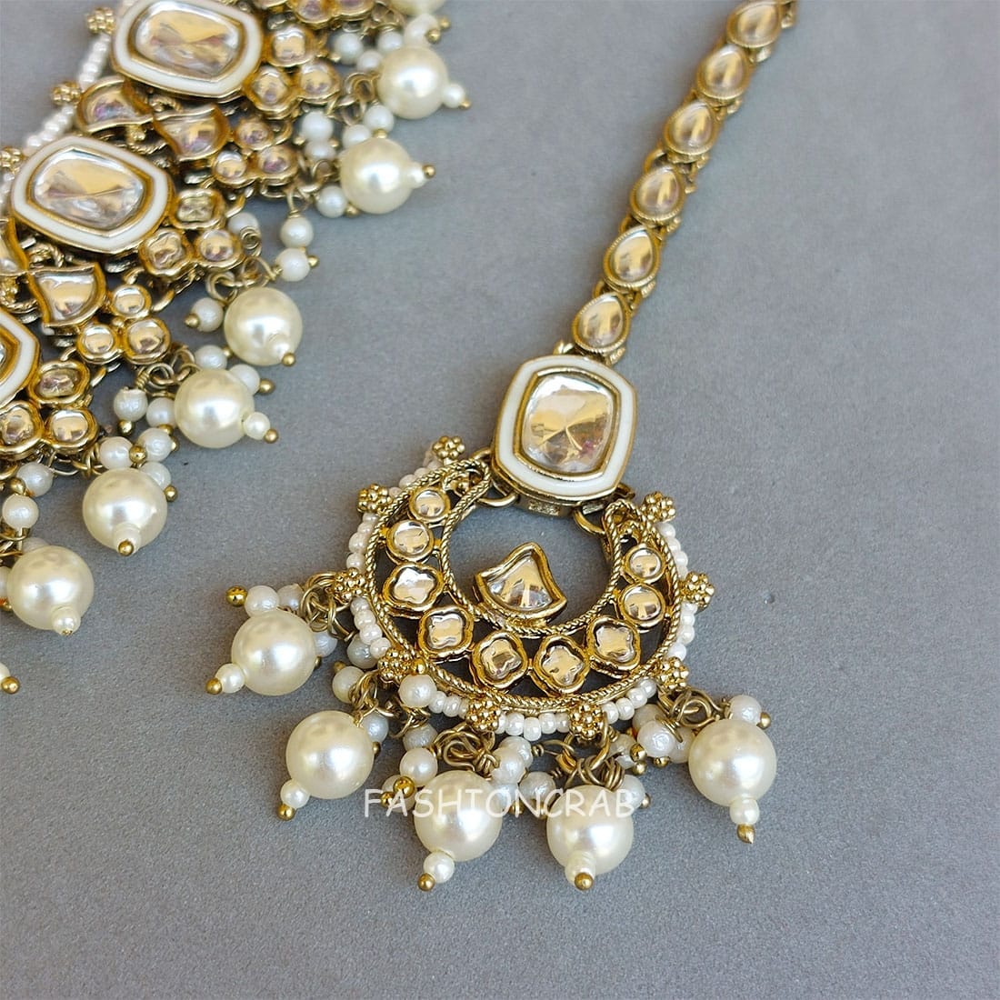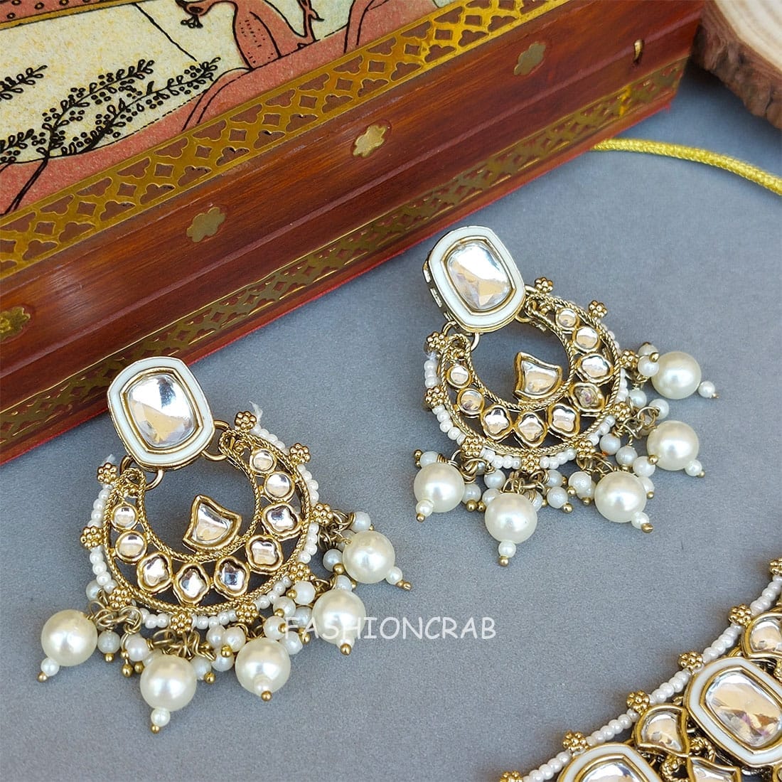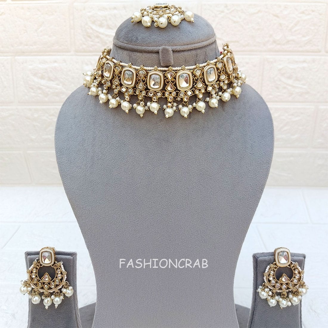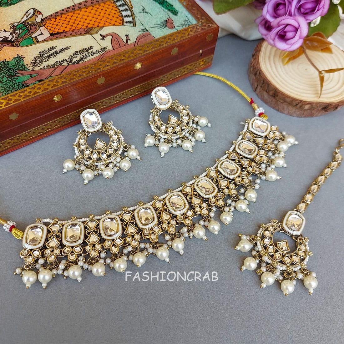 A pair of Traditional Pari Kundan Choker Set White for Bride.