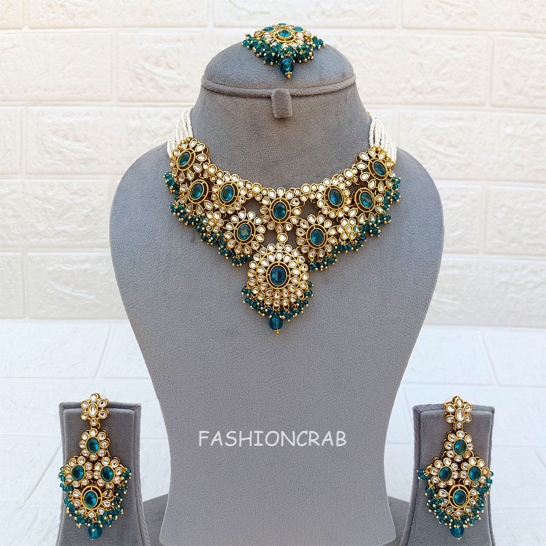 A pair of Traditional Sanya Peacock Blue Choker Set for Anniversary Gift.
