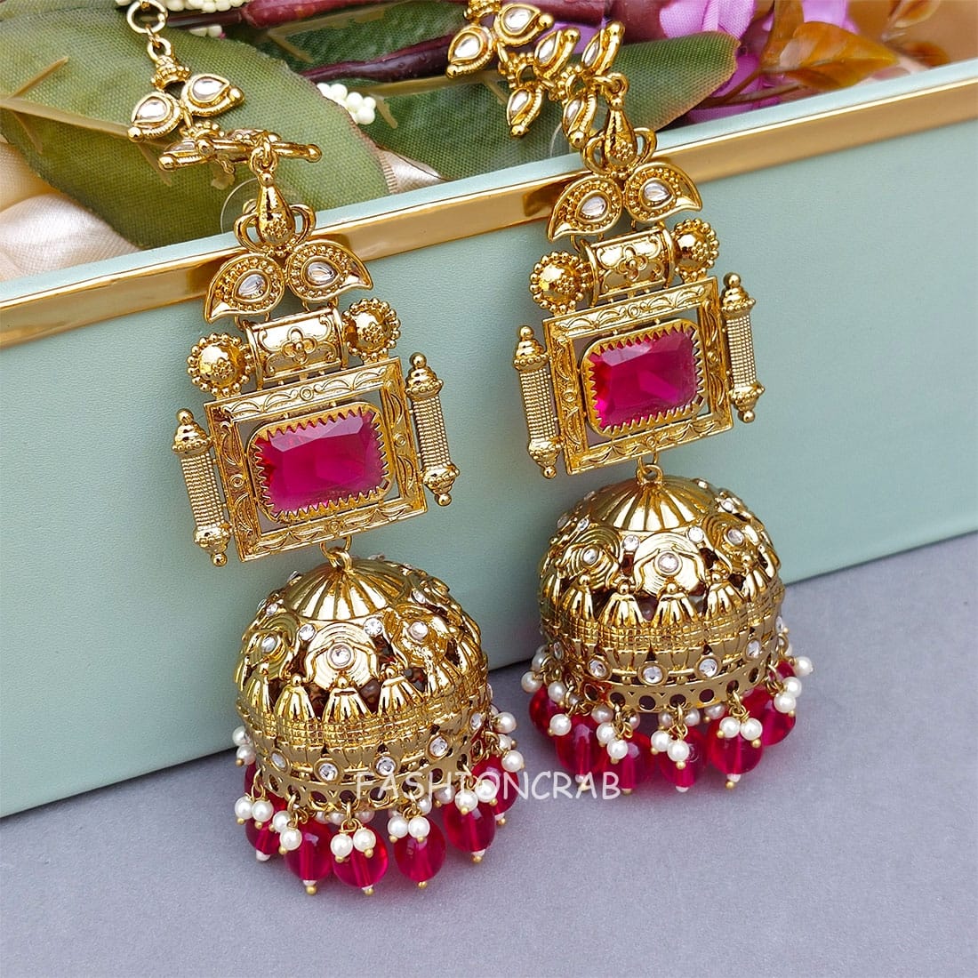 A pair of Sophia Big Kundan Jhumka – Pink.