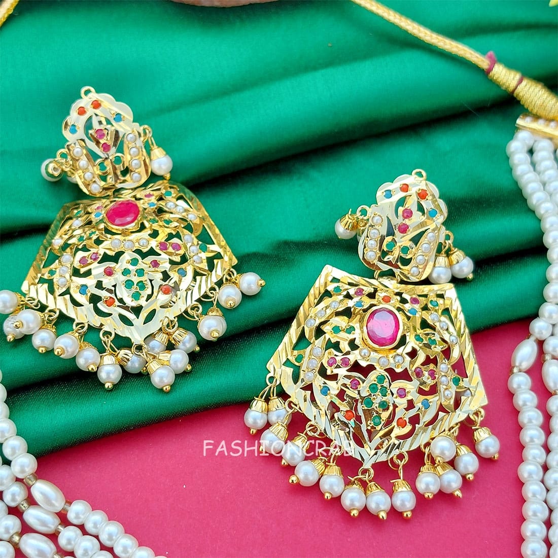 A pair of Traditional Surveen Jadau Jewellery Multicolor for Punjabi Bride.