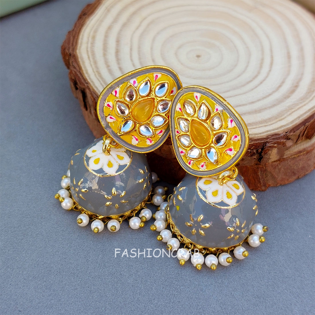 A pair of Vaanee Small Jhumka Earrings – Grey.