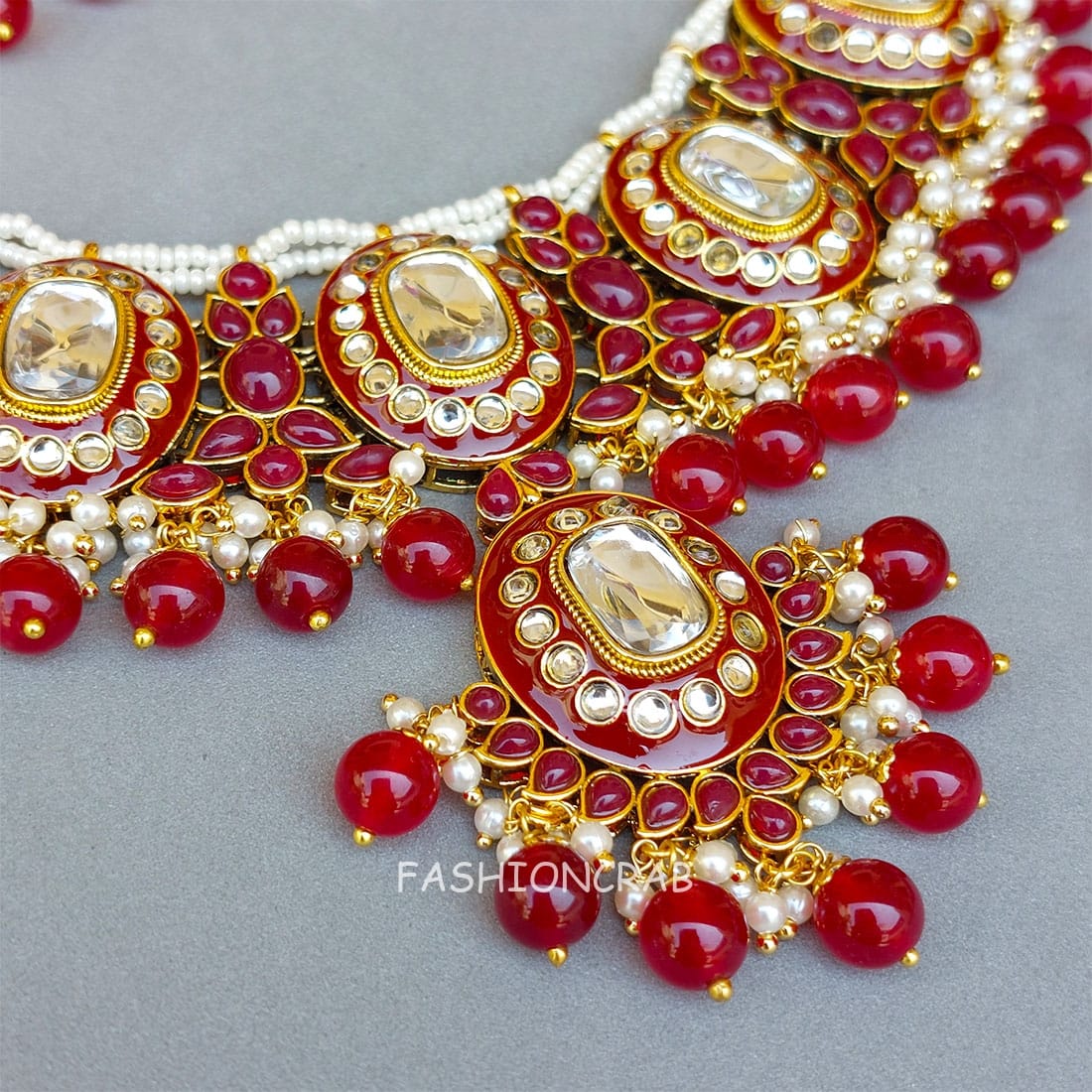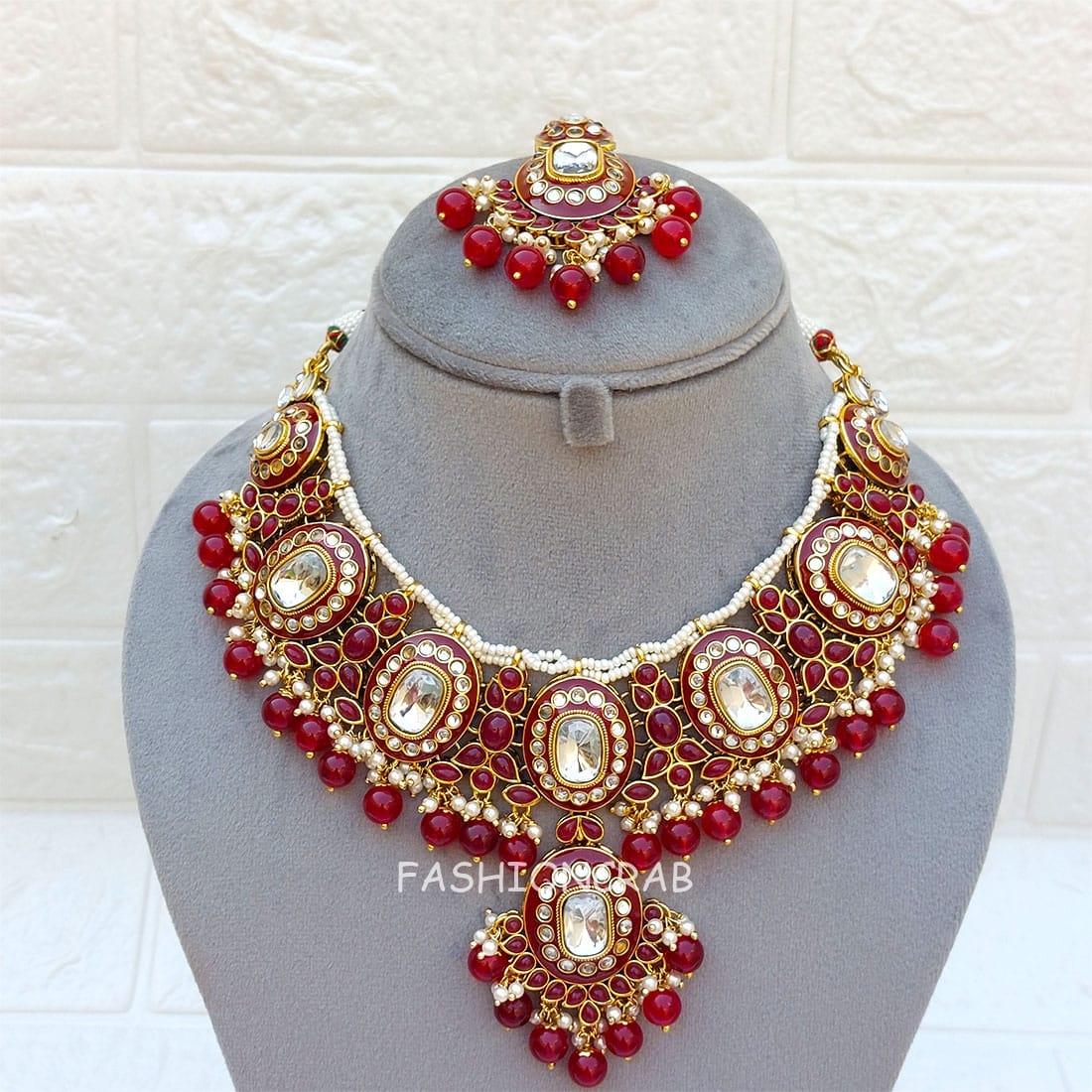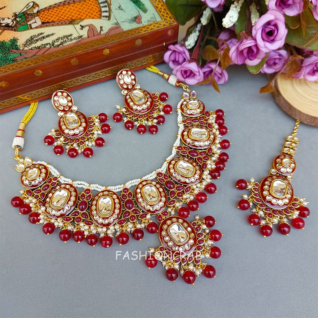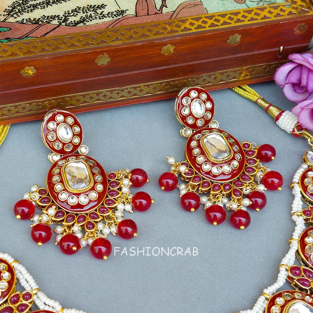 A pair of Traditional Vasundhara Maroon Kundan Necklace.