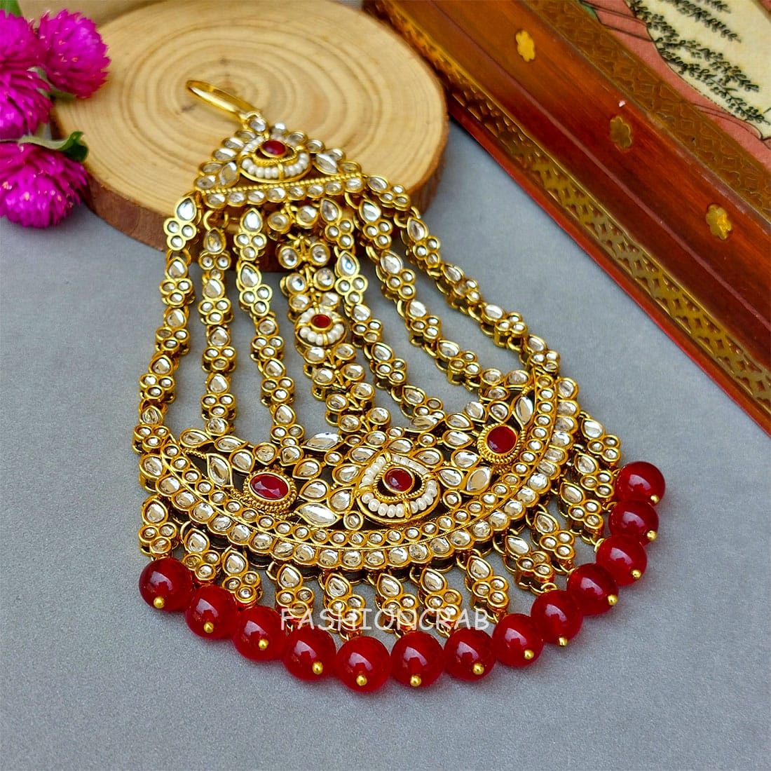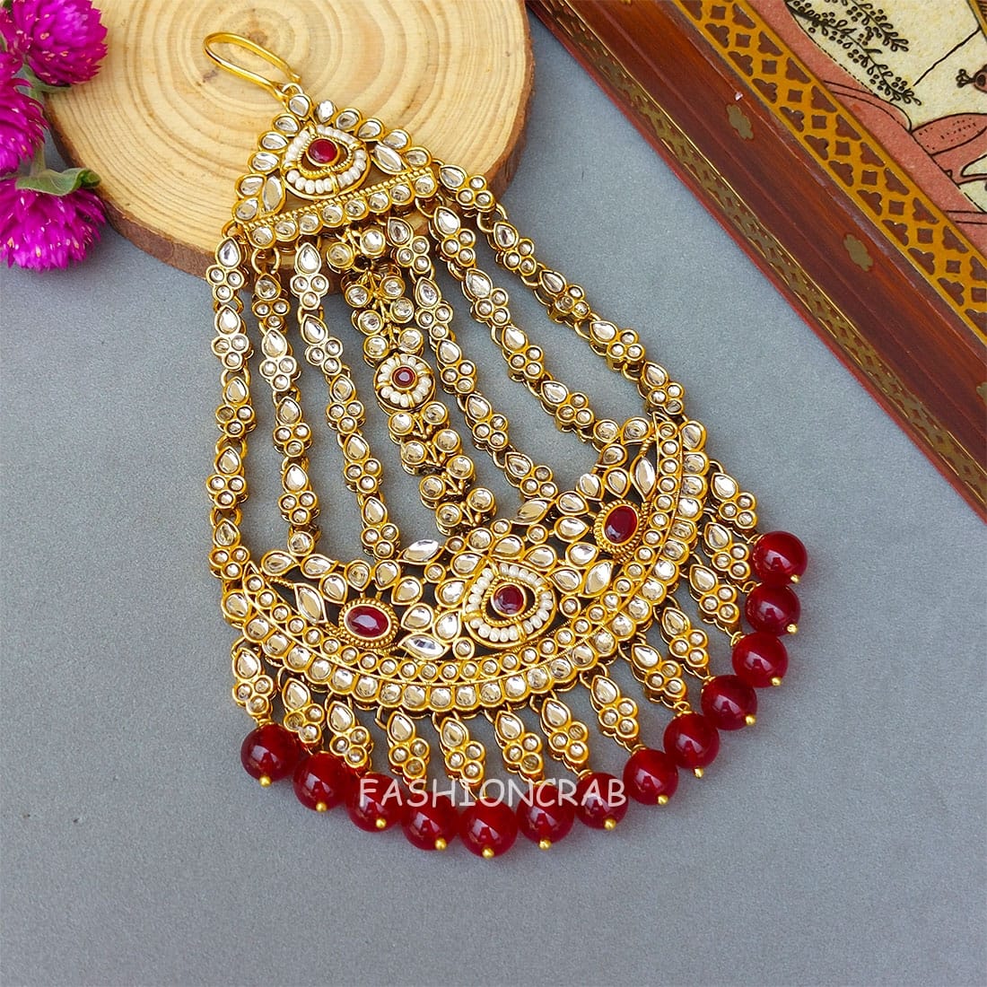 A pair of Ziya Kundan Jhumar Passa – Maroon.