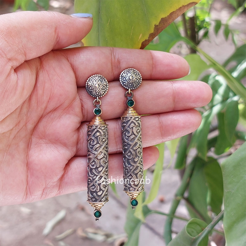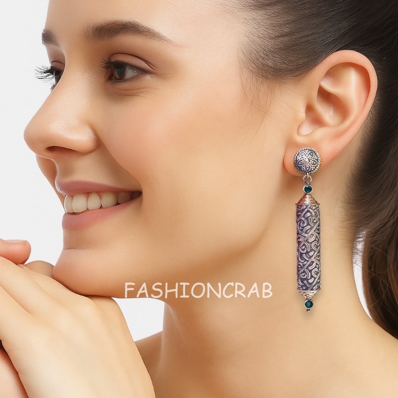 Indian Bollywood Style Light Orange Black Metal Jhumka
