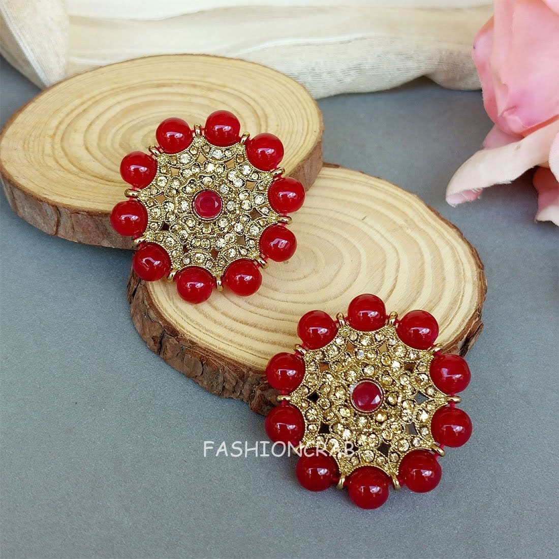 Indian Bollywood Style Jasmine Stud Earrings – Maroon