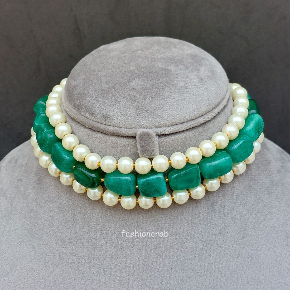 A pair of Traditional Jennifer Pearl Choker – Green for a Co-ord Set.