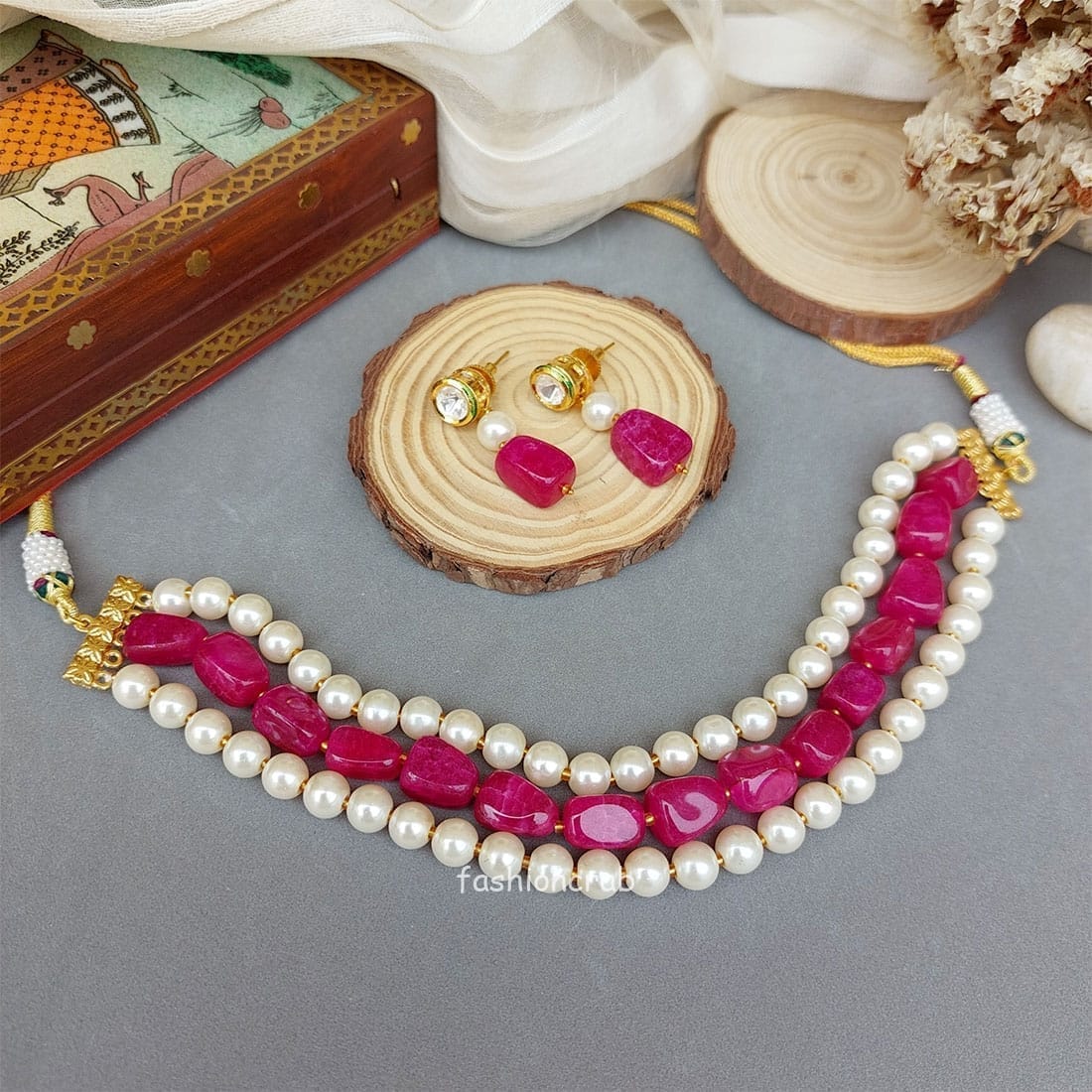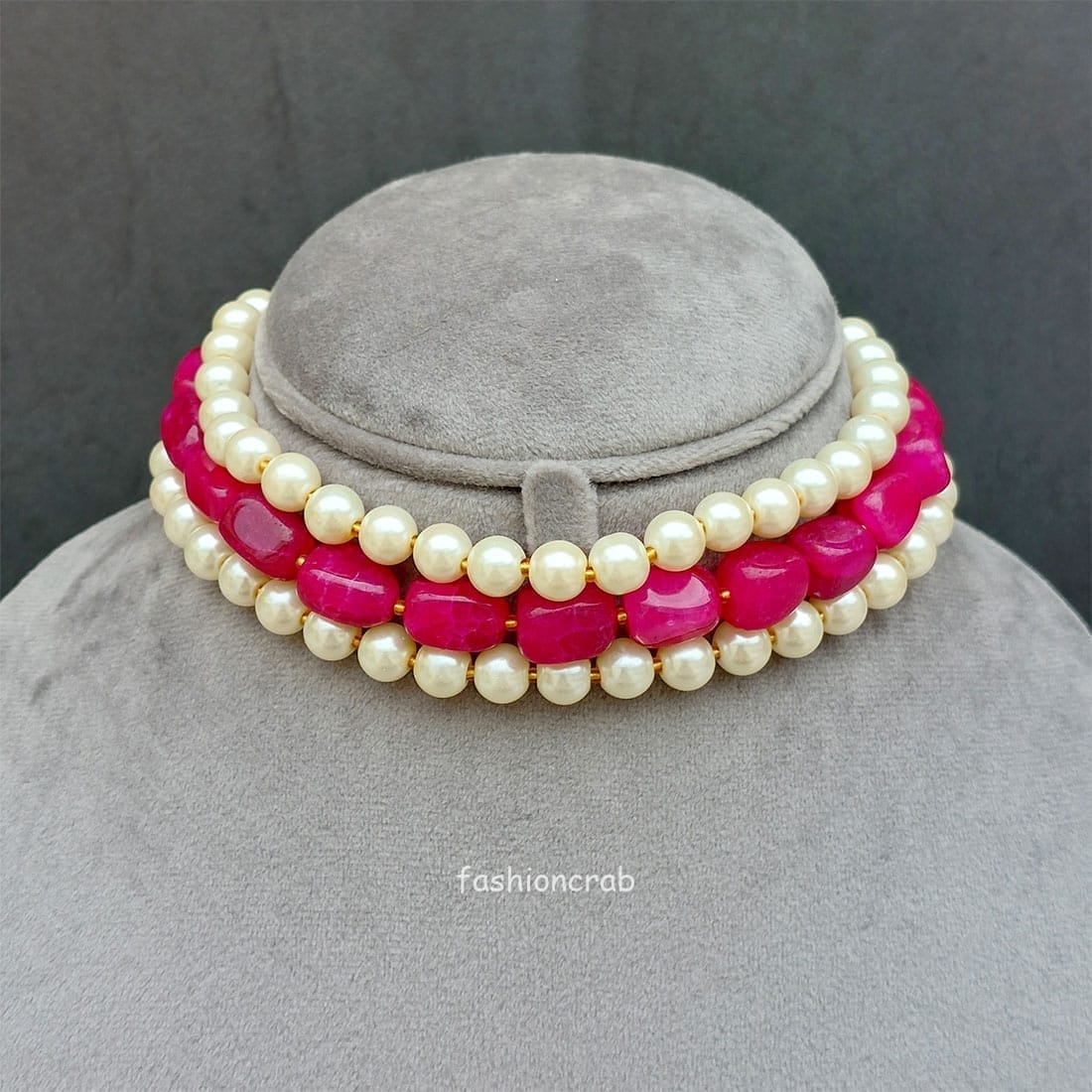 A pair of Traditional Jennifer Pearl Choker – Pink for a Co-ord Set.