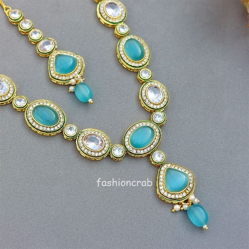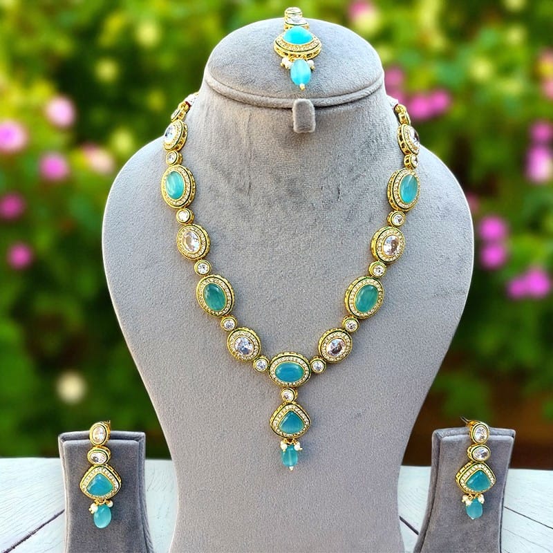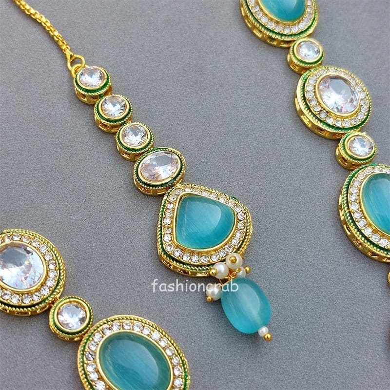 A pair of AD Stone Necklace Set – Blue for a Wedding.