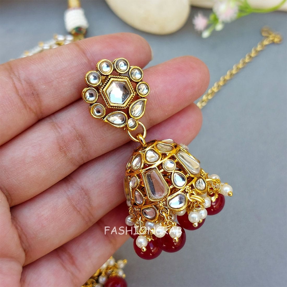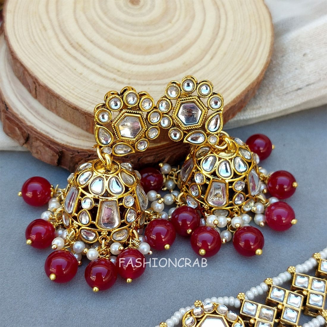A pair of Traditional Kajal Kundan Choker Necklace – Maroon.
