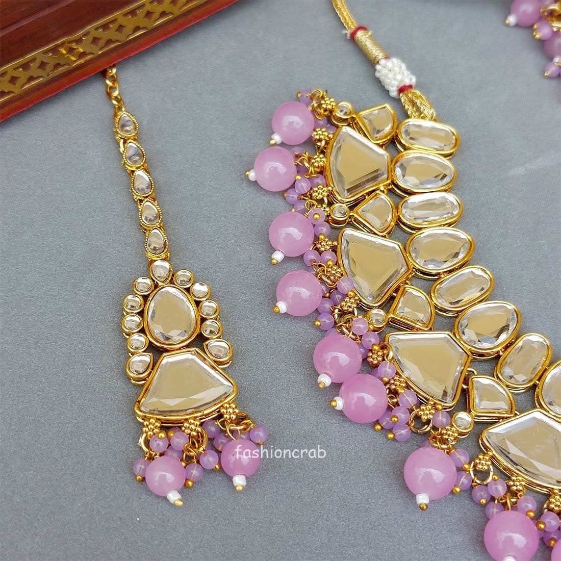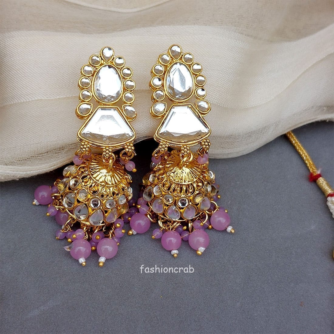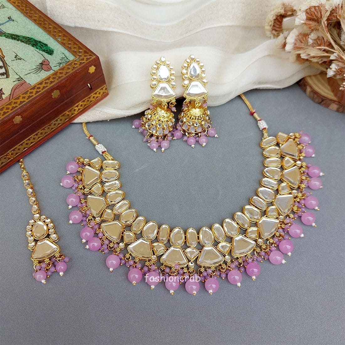 A pair of Traditional Karisma Big Kundan Set – Lavender for Wedding.