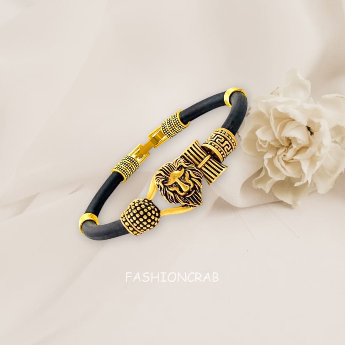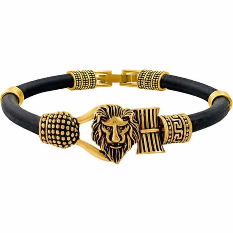 An antique Golden Lion Bracelet for Mens & Boys – with exquisite design with lion’s face. This Overlapping Black Bracelet can be easily slipped onto any wrist size. This Golden Black Bracelet can be accessorize with any ethnic or western apparels.