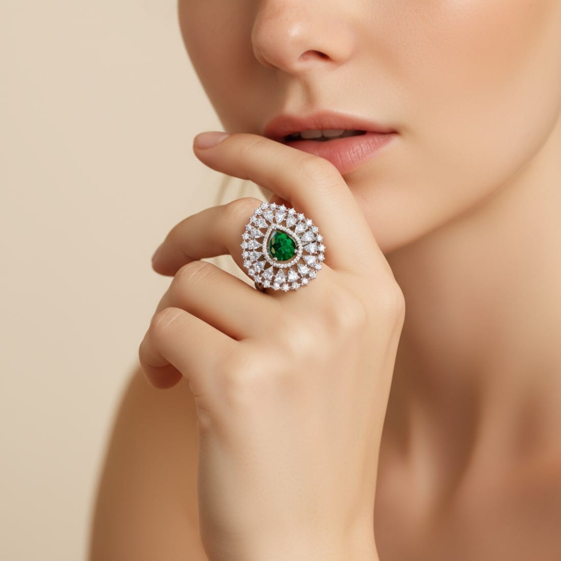 Accessorise your ethnic look by wearing this Cubic Zirconia Finger Ring for Women from Fashioncrab to give a classy touch to your attire. Brass has been used in the making of this silver color beauty, which will sit pretty on your fingers and glisten away.