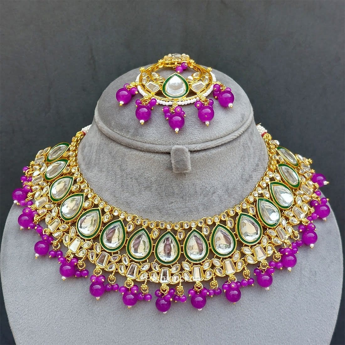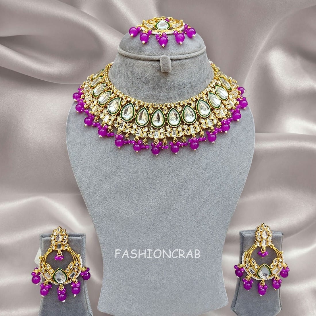 A pair of Traditional Mouni Purple Kundan Jewelry for a Saree.