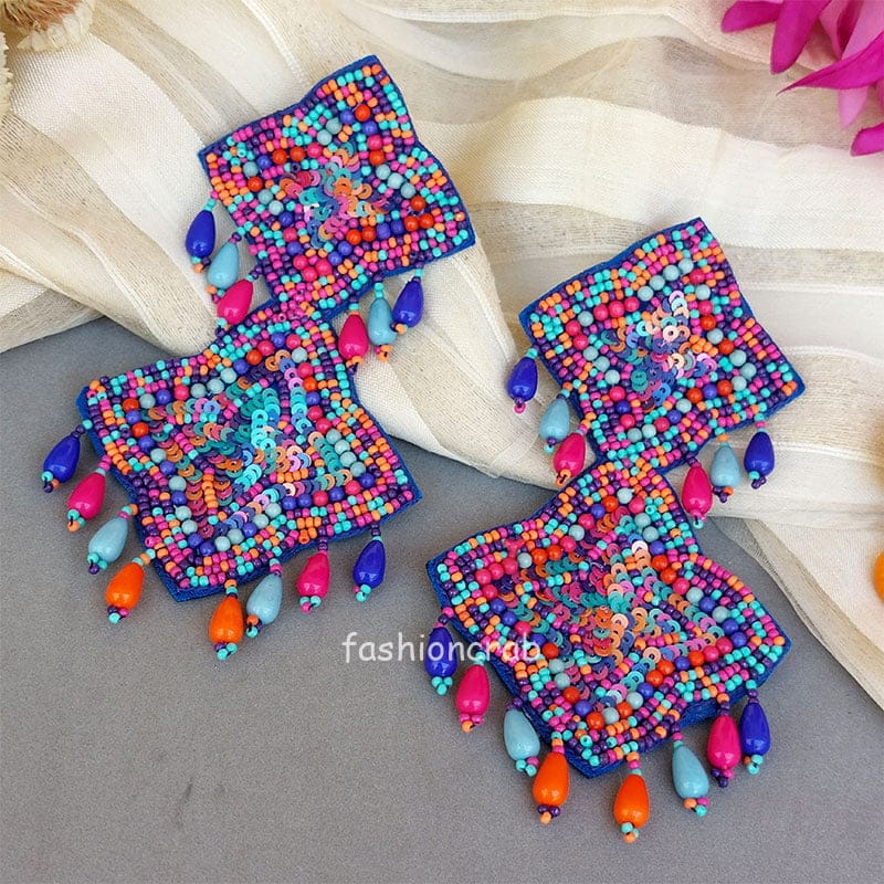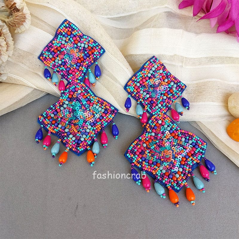 A pair of Tassel Multicolour Beads Earrings for Girls with beads work all over.