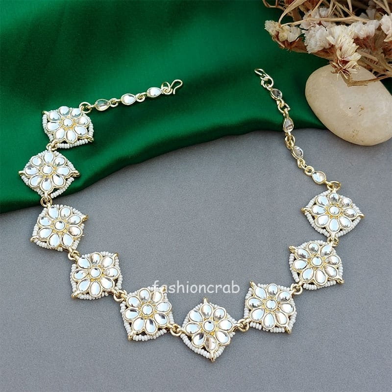 Look stunning in your ethnic wear with this Traditional Neha Kundan Mathapatti for a Wedding. This sheeshphool mathapatti is best suited for any hairstyle.