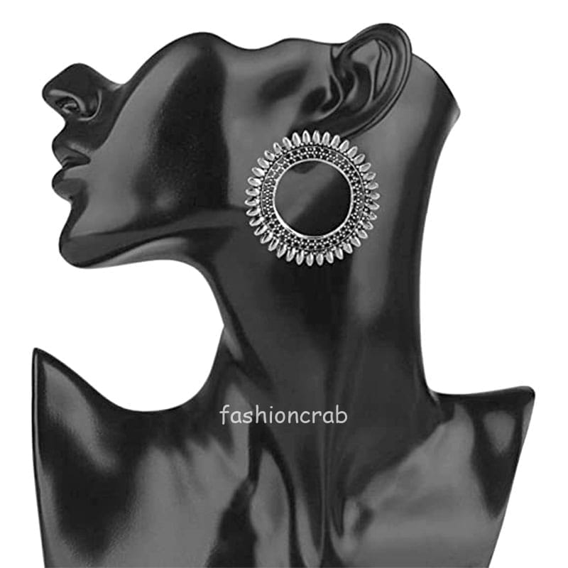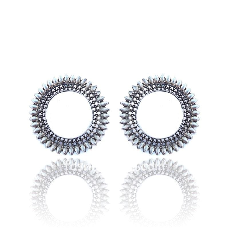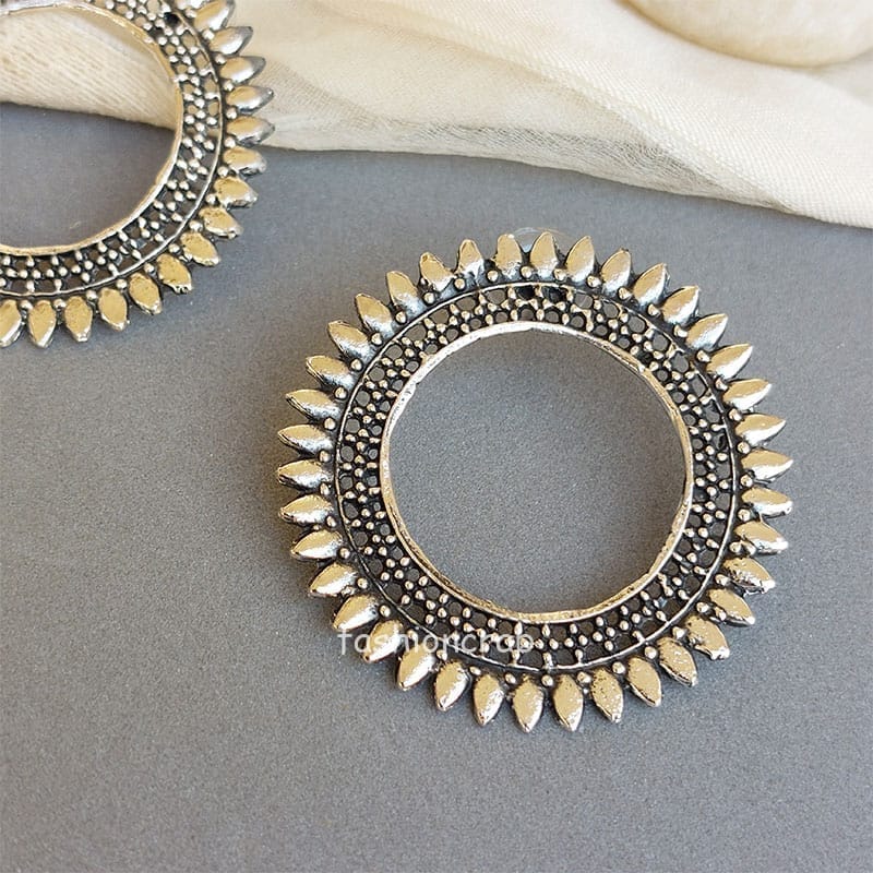 A pair of Silver Look Alike Oxidized Silver Hoop Earrings for Saree.