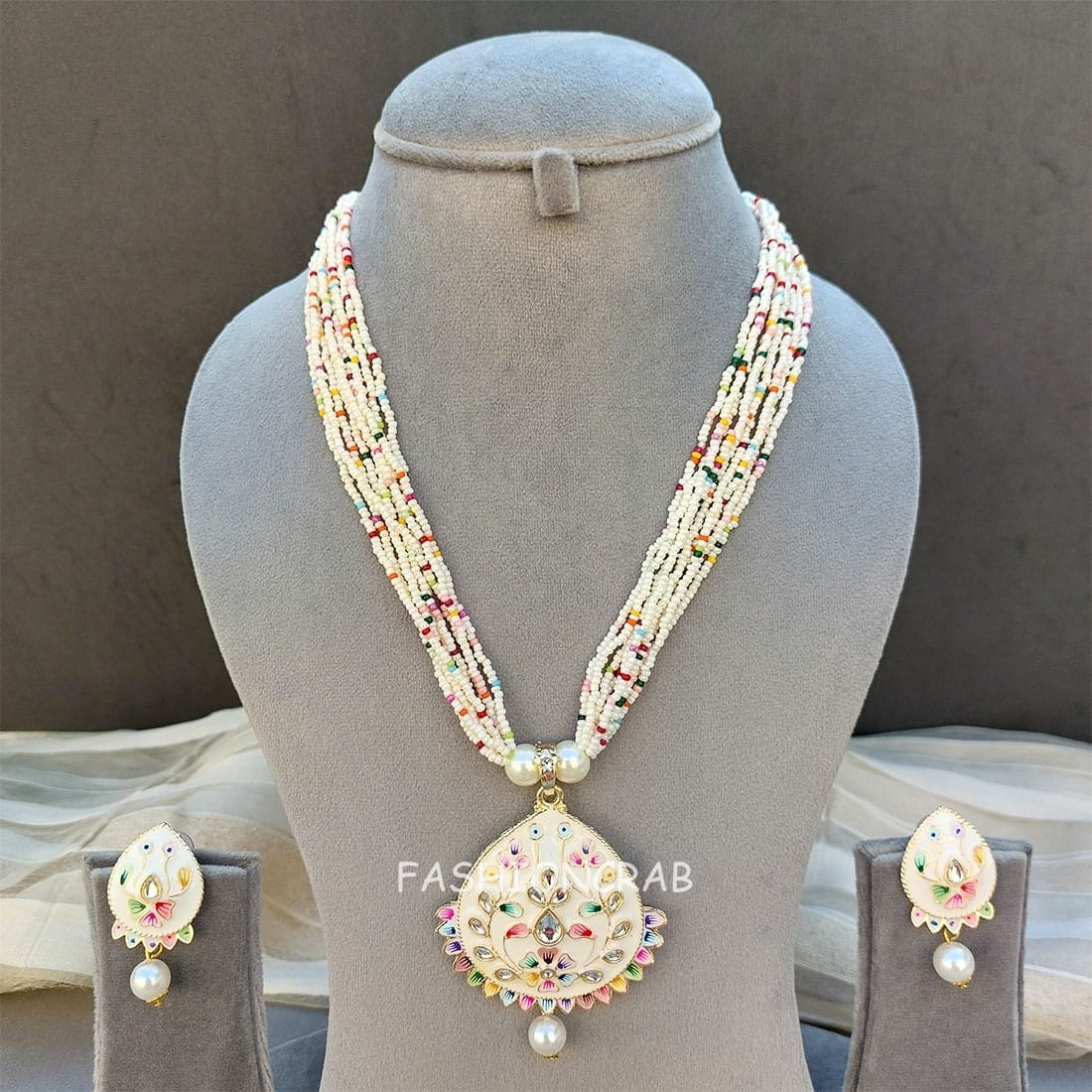A pair of Rani Meenakari Necklace – White Set for Shaadi.